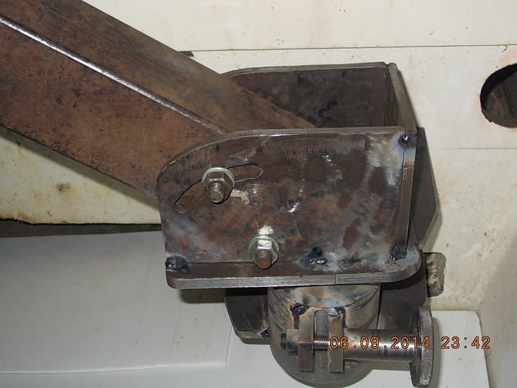 Вырезал железки, выточил и сделал нижнее крепление стойки. Пока на прихватках. Стойка будет иметь 4 "степени" свободы, то есть нога будет поворачиваться в 4х местах чтобы иметь возможность подстраиваться под рост оператора станка и поворачивать в сторону. И зажимы для фиксации в нужном положении. Завтра возможно приделаю корпус стойки :)