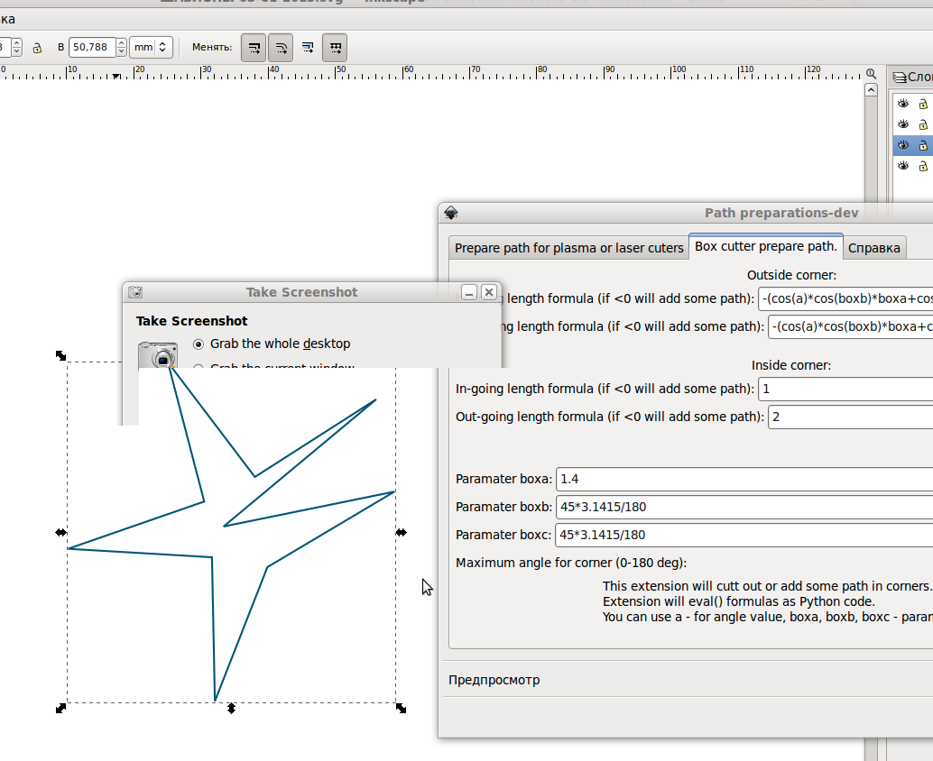 Да, в файле gcodetools --- preparations.inx или как-то так, там просто меняешь надписи на нужные. (только при следующем апдейте они слетят...)boxxx2006 писал(а):Реально, что бы я сам мог поменять надписи в окне препарации?