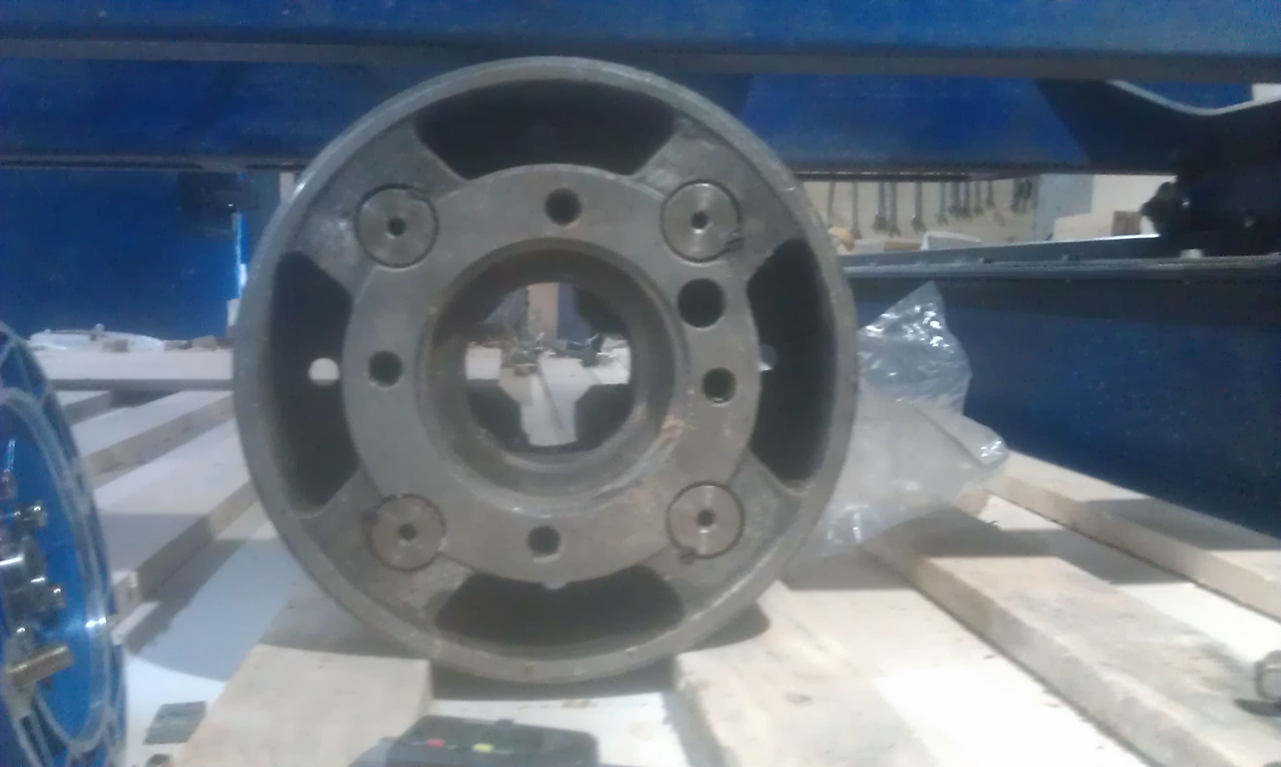 с одной стороны будет стоять токарный патрон 250мм в диаметре (вес 22 кг) с другой шаговый двигатель, на двигателе вал 14мм со шпонкой, типоразмер двигателя Nema 34.