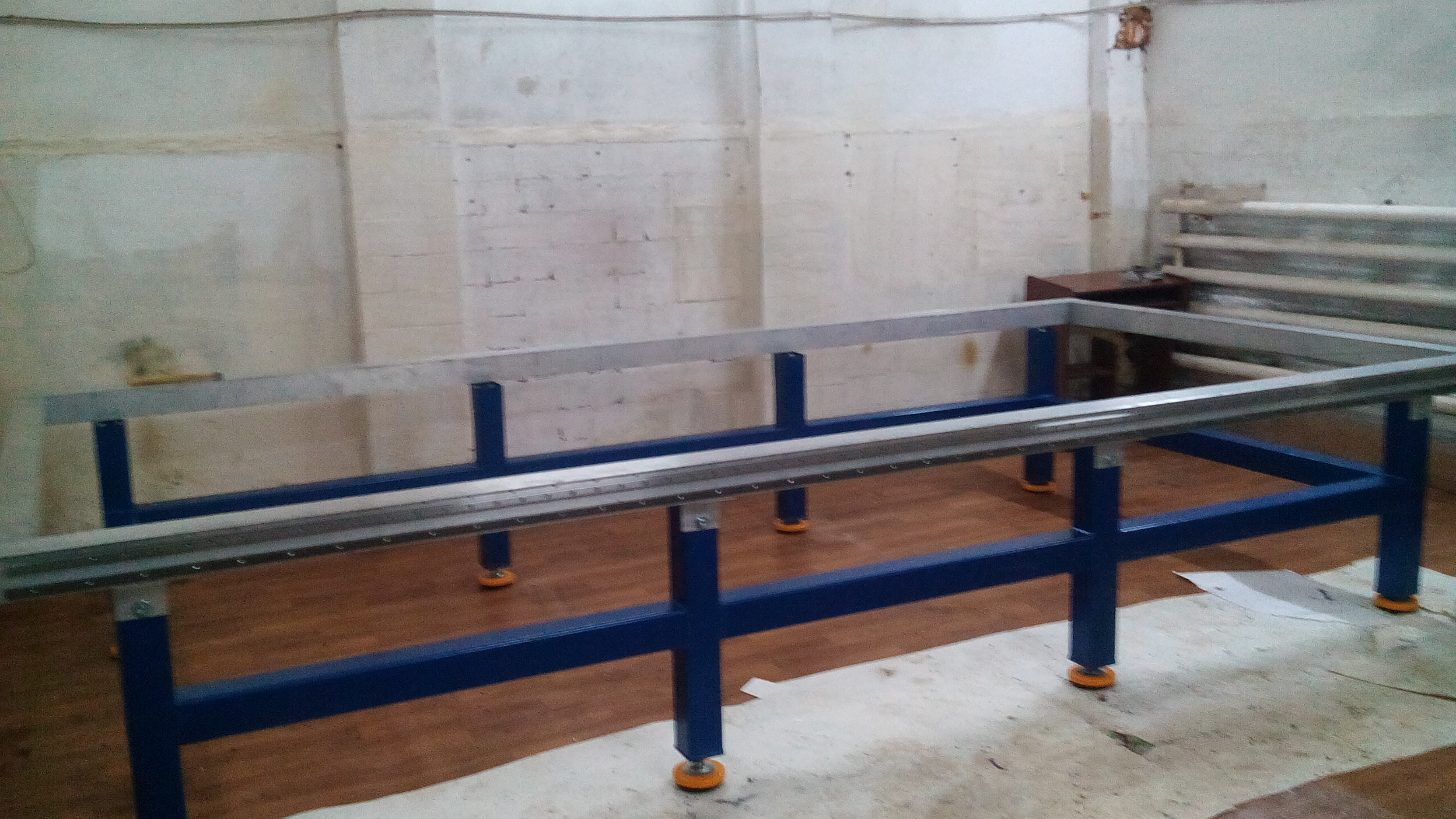 импровизированный Т-слот из уголков приклёпанных к трубам.