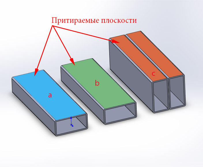 Единственное что изменится, придется убирать проставки или как минимум убирать упорный буртик под рельс. 2 трубы сами по себе (a, b) еще две скручены по бокам струбцинами/болтами (c). Последние, по окончанию работ, разбираются и используются в качестве боковин для крепления рельс оси y, выставляясь в пространстве с помощью "самолета" (мост между двумя опорными поверхностями с рамным уровнем посередине).