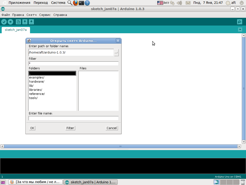 aftaev писал(а):Пару раз открыл файл через это чудное окно открытие файлов сразу желание отпало работать с Ардуино в Линухе!