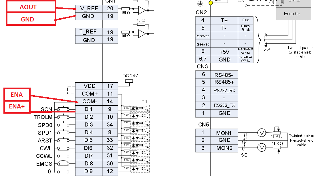 А для подвключение входов , для SON (ENA как ключ )источник ASDA-B2 (VDD)