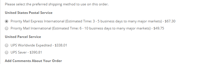 Priority Mail International (Estimated Time: 6 - 10 business days to many major markets) - US$59.70