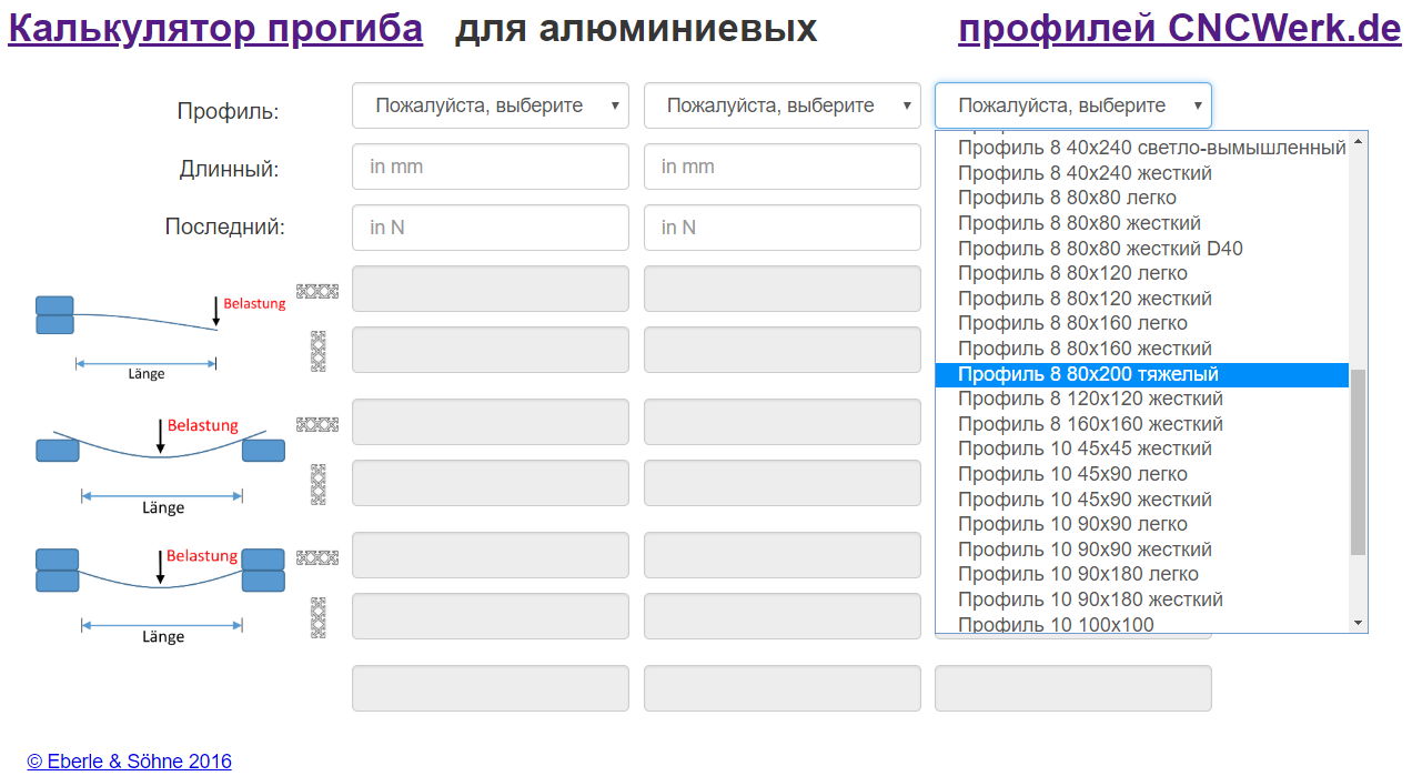 Наткнулся на хороший калькулятор сравнения деформаций алюминиевых профилей (основные профиля которые продают в Европе). На немецком языке (Гоогл переводчик в помощь)