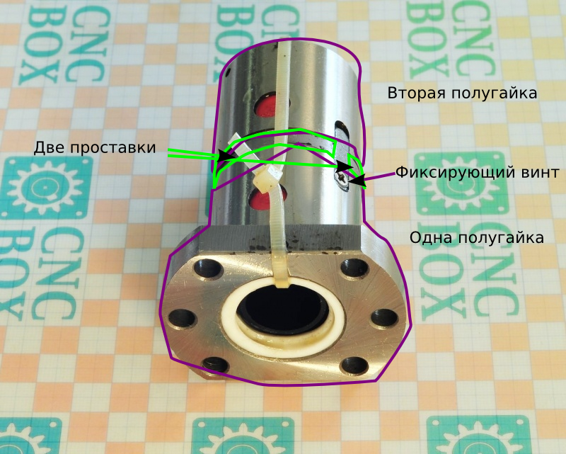 Сфотографируй ее. Там обычно две полугайки, либо их повернуть друг относительно друга. Либо проставку между ними расширить.DrDWoo писал(а):Я вот только не разобрался как гайку на ШВП регулировать.