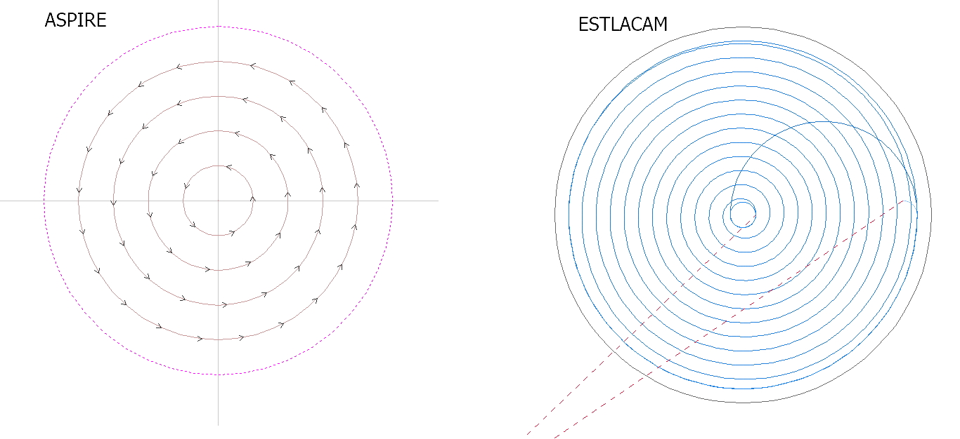Например в программе aspire, чтобы главный контур разбить на четыре части например, и отфрезеровать их всех по отдельности - там танцы с бубнами, а в программе estlcam это сделать очень легко и удобно. Плюс эта программа заточена под металл и там есть всякие стратегии фрезеровки металла (трохоидальные и прочие)
