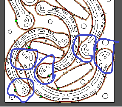 Вот часть кода где происходит вибрация. В приложении также картинка модели и там отмечено, где происходят вибрации. Станок оказывается управляется не Mach3, а с пульта NK-105 G3, пока не знаю есть ли на нем функция типа CV control как Mach3. В самом Artcam нельзя сделать более плавные линии для кругов? В ручную же будет проблематично в коде переделать на плавные линии?hmnijp писал(а):Код свой скиньте, тот кусок где у вас на окружности вибрации происходят...