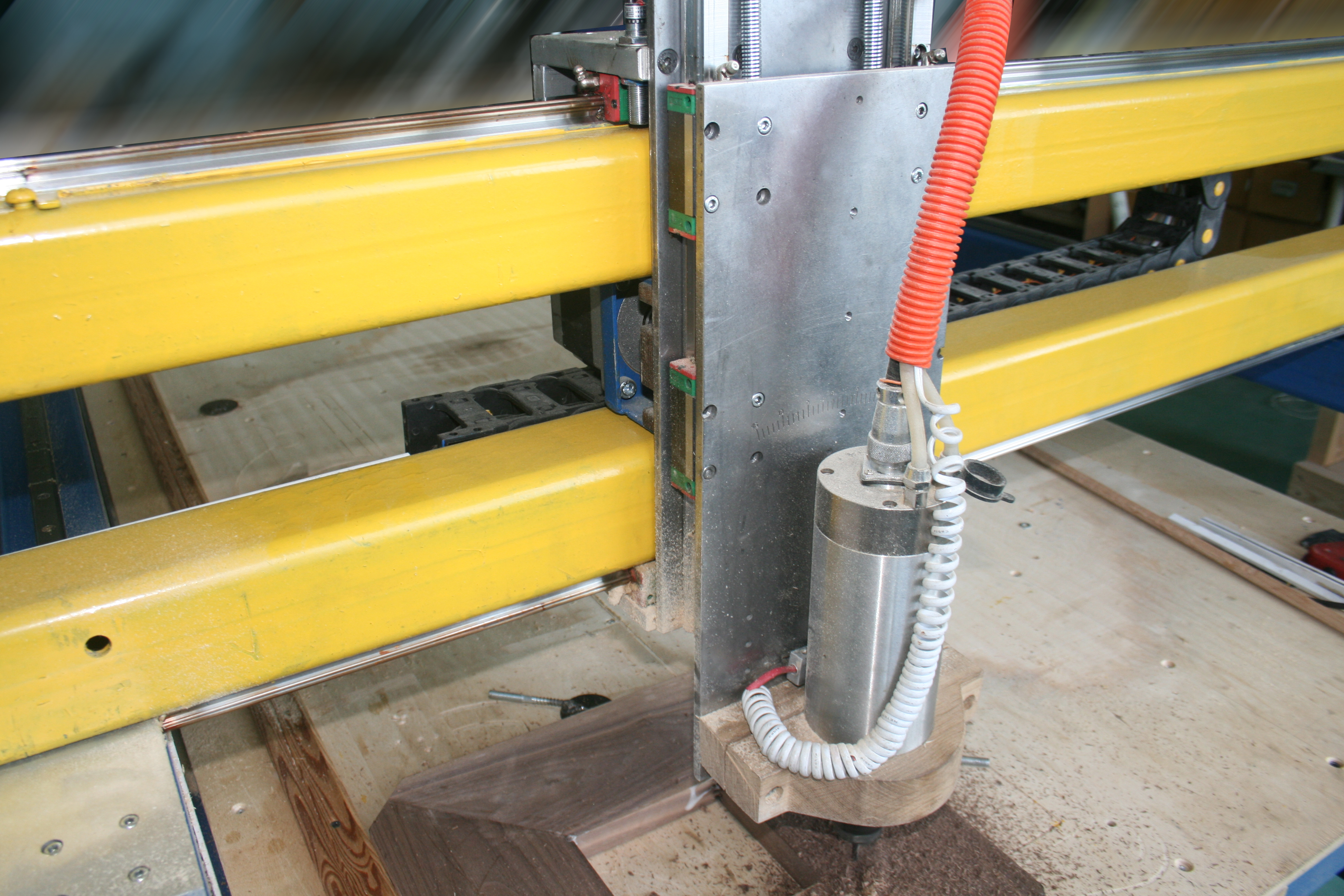 Станок конечно не реализован пока до самого конца - но он уже работает и отбивает себя по полной программе. Стол пока закреплен временно - тупо лежит на деревянных подкладках, шпиндель держит деревянный хомут, хотя два месяца назад половина деталей, редукторные узлы и держатели портала вообще были из мдф, на нем-же и сделал все остальное из алюминия.