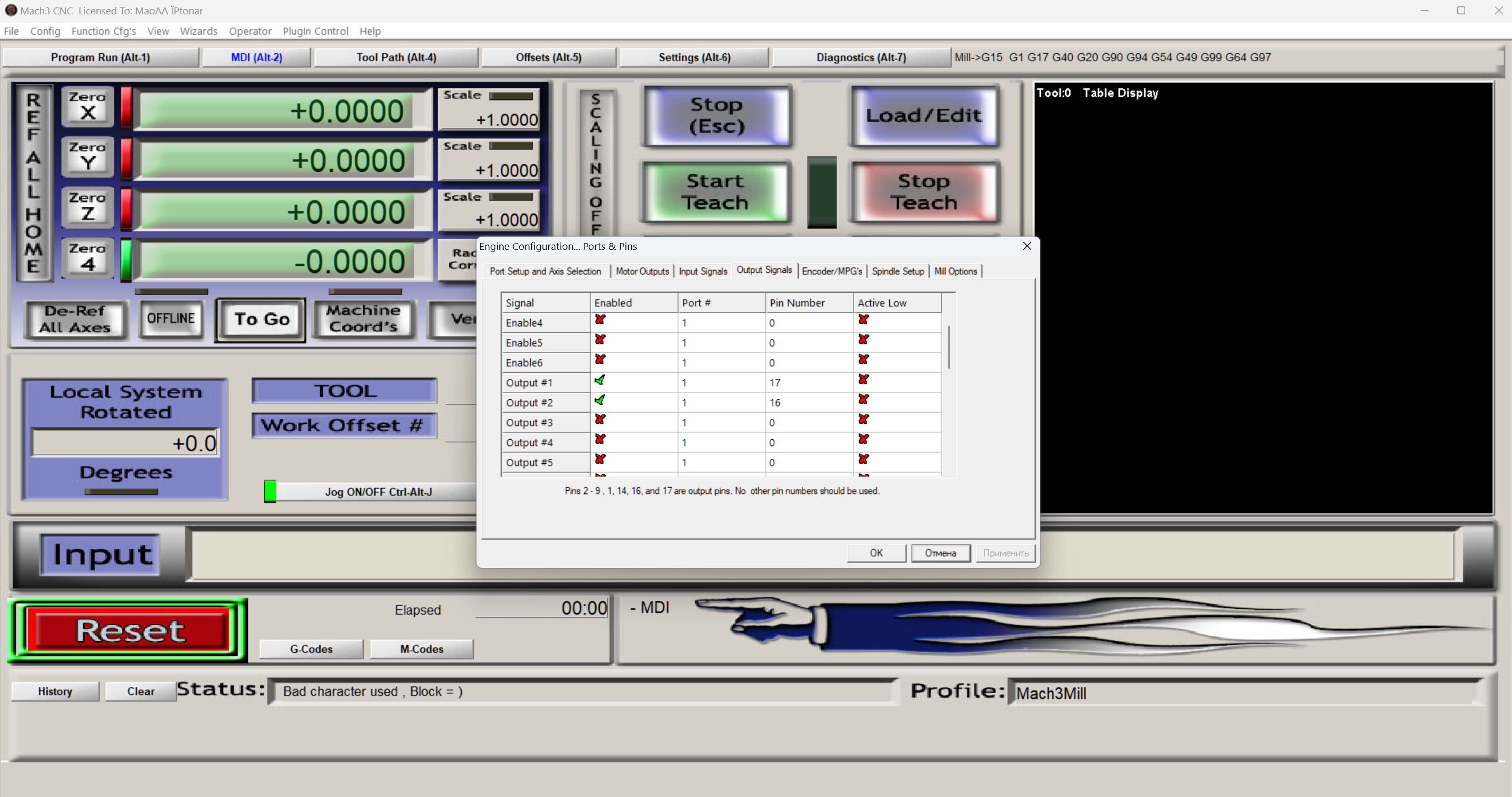 8. Рекомендую в general config поставить галочку "Ignore M calls commands while loading", чтобы М-команды не выполнялись во время загрузки, а то можно и увечья получить, когда шпиндель при загрузке сам по себе включится.