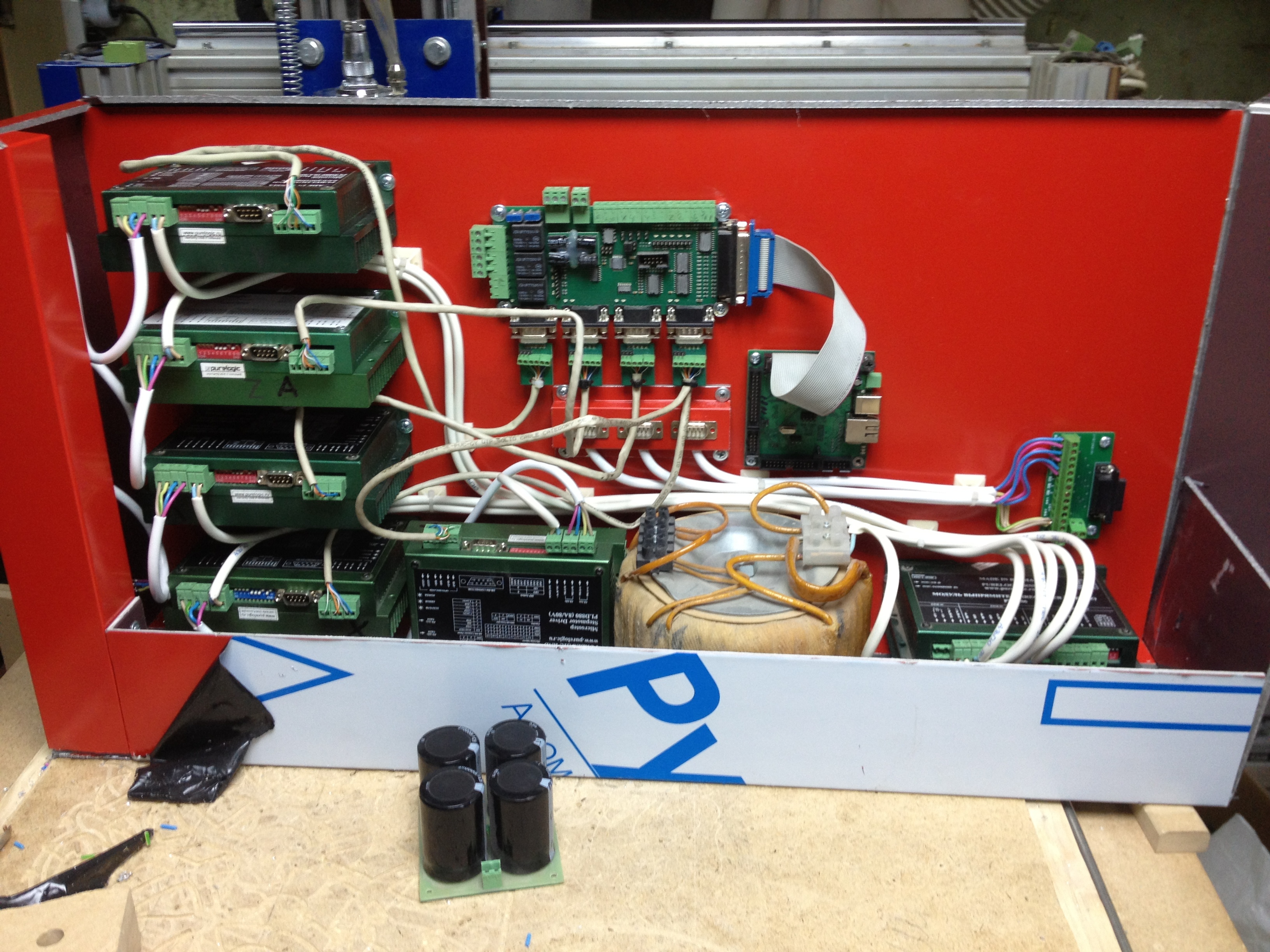 НЦстудио5, драйвера ДМ542, SFU1204, скорость фрезерования 500мм/минуту, 2,2 квт, винда 7х32, поле 415х420, провода на движки и на концевики и на шпиндель разнесены по разным жгутам и чуть-чуть заэкранированы(не все).