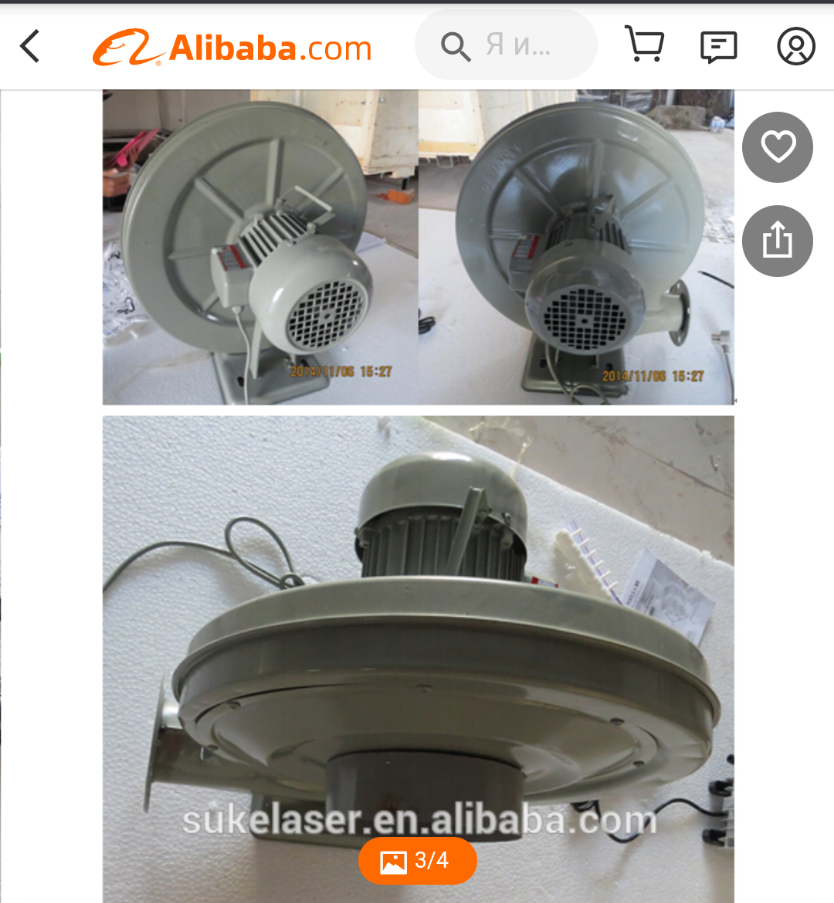 Для лазера же использовал вот такой китайский каналный вентилятор диаметром 200 мм мощностью 110-120 ватт, длина выхлопа пару метров.