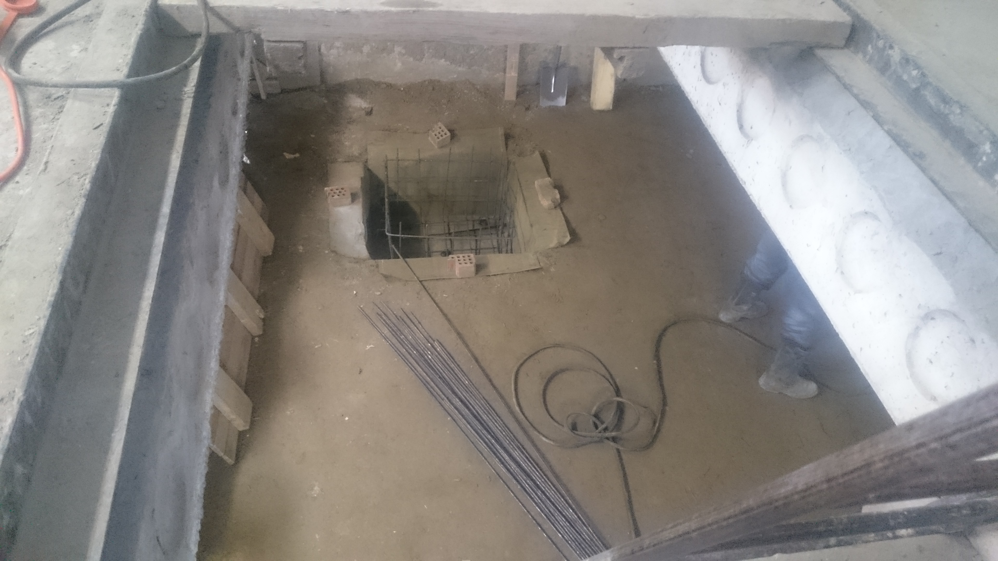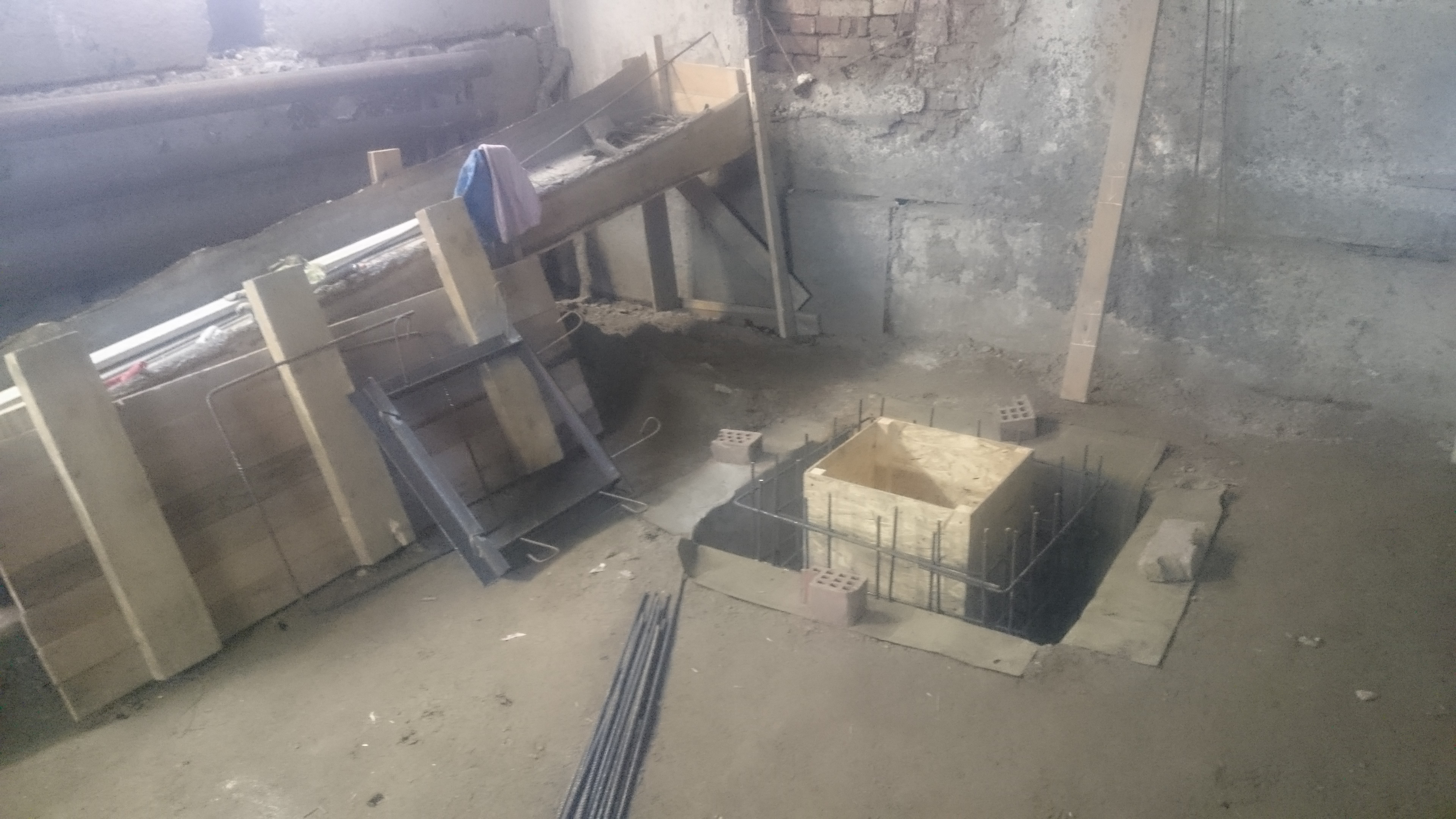 между этажами дырища 900х5500. через нее будет выниматься грунт копай-ногой, литься бетон и опускаться станки. Возможно в расчлененном состоянии.