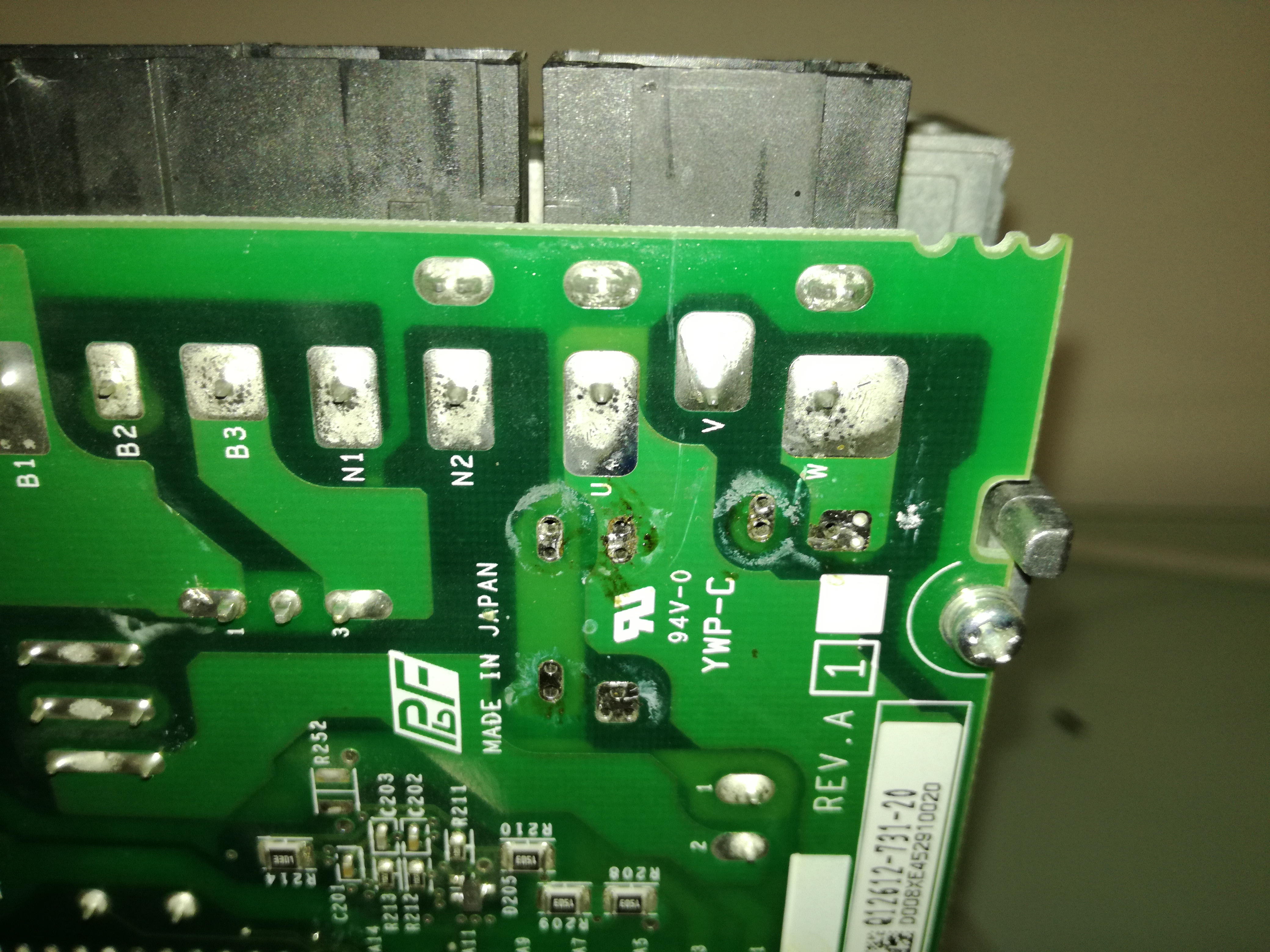 Почти восстановил. Горят, в теории, только варисторы и плавкий предохранитель быстрого реагирования. На практике, могут вылететь и диодные мосты выпрямителей (однофазные, которые выпрямляют напряжение питания управления DB2; трехфазные - помощнее, и вроде выдерживают)