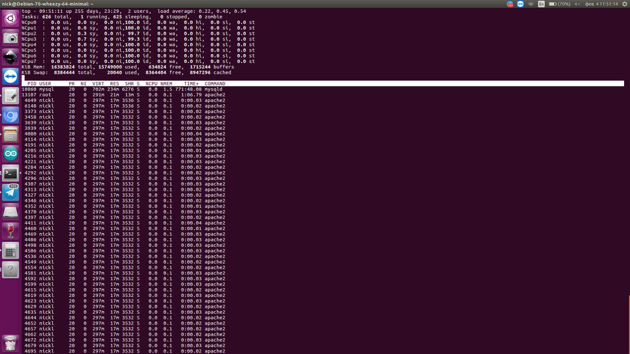 UAVpilot писал(а):Там апачей не видно, а LoadAverage выше, чем на первом, где куча апачей...