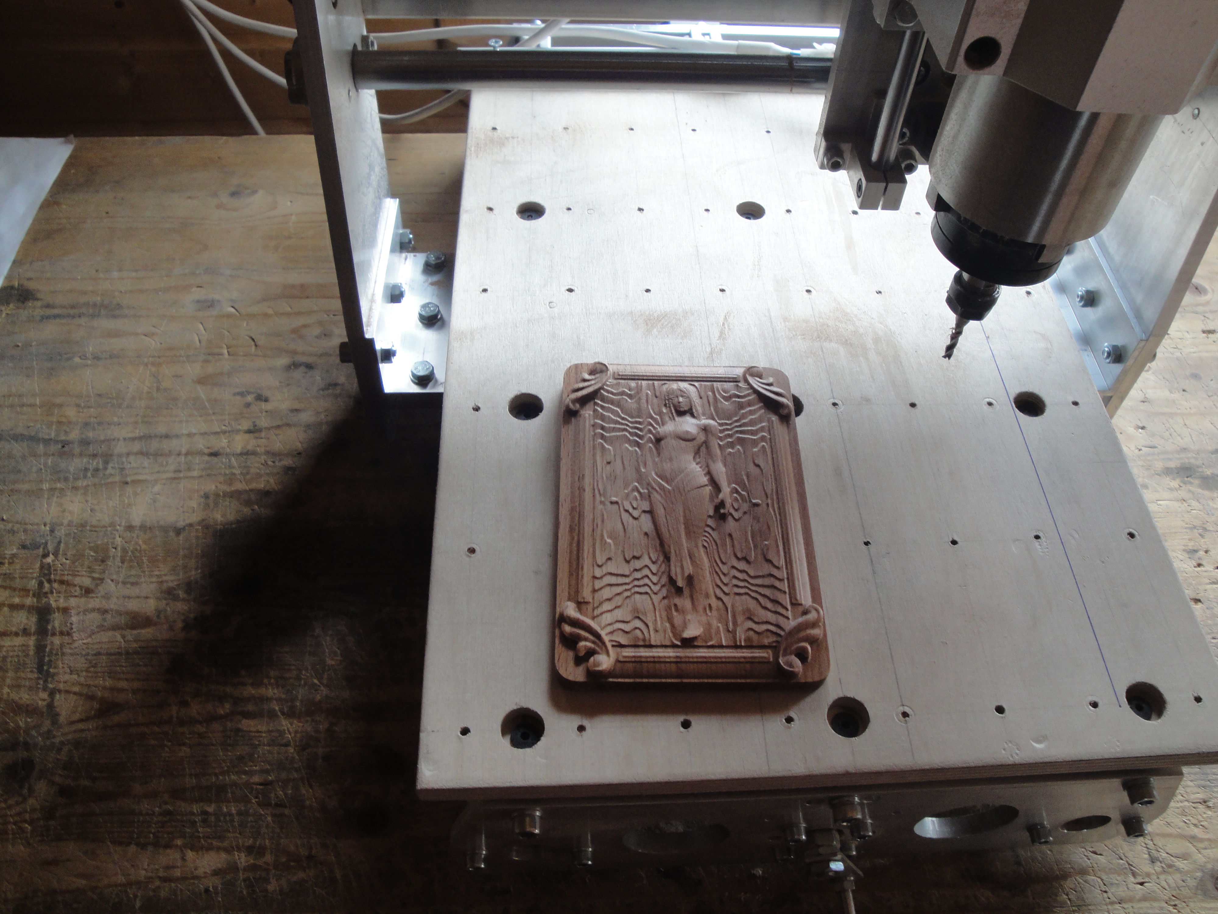 Сейчас все перевез на дачу и там продолжаю пилить гравюры. Неожиданно возникли нюансы со шпинделем - может неожиданно отключиться во время работы, раньше этого не было. Судя по всему электросеть на даче "слабенькая", напряжение "скачет", вот частотник на это и "реагирует". Пытаюсь подобрать другие режимы его работы!