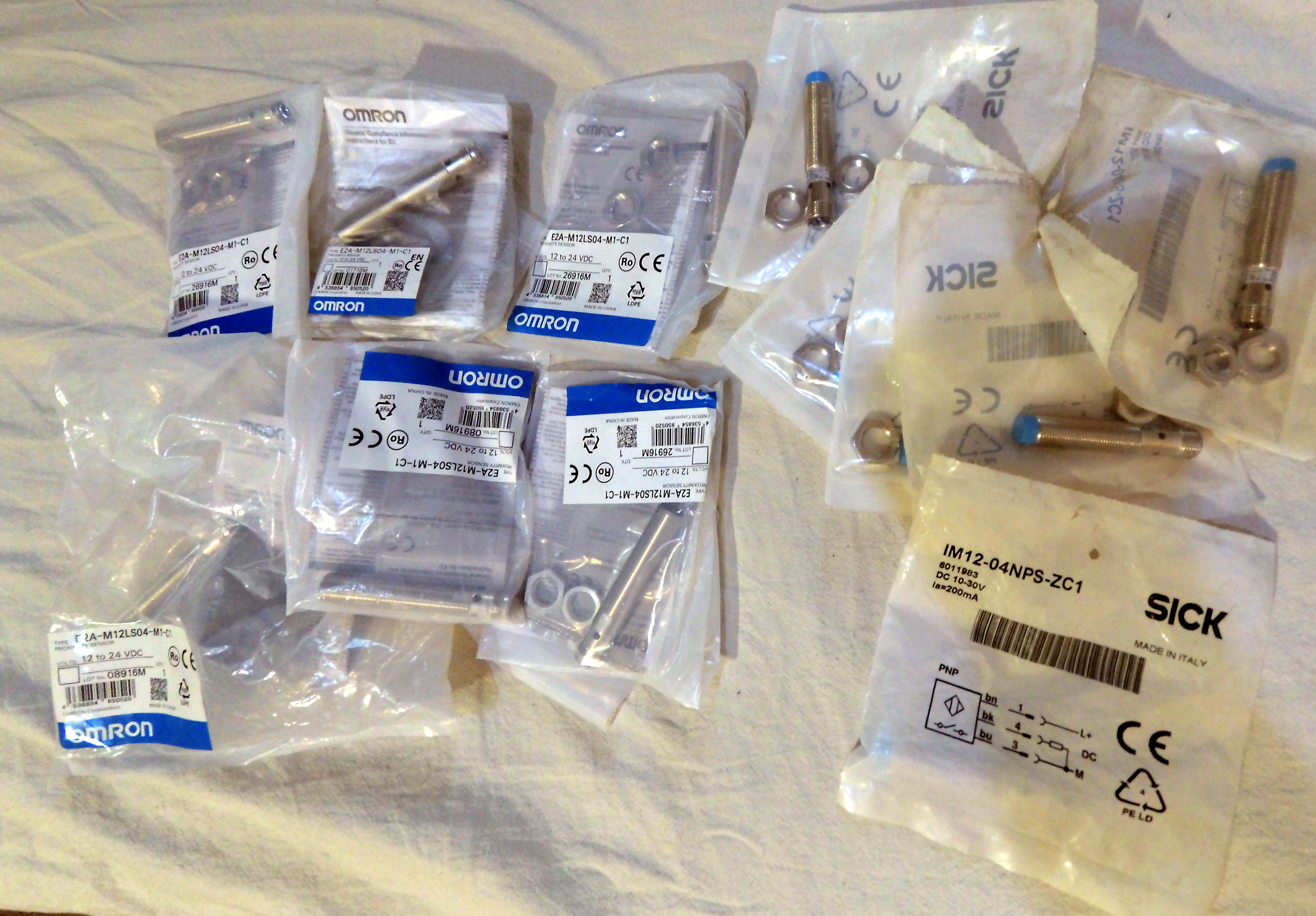Добавлены индуктивные датчики NPN 12 мм OMRON E2A-M12LS04-M1-C1 6шт 800р\шт новые в уп.