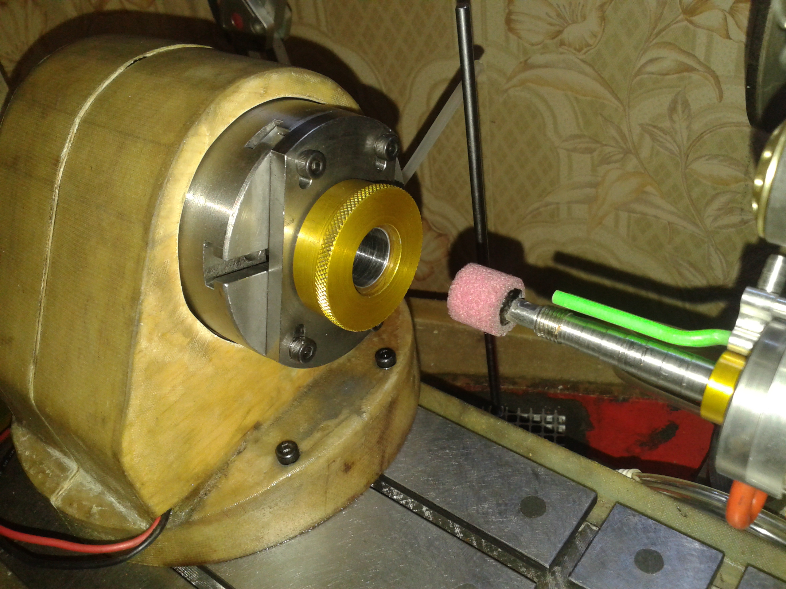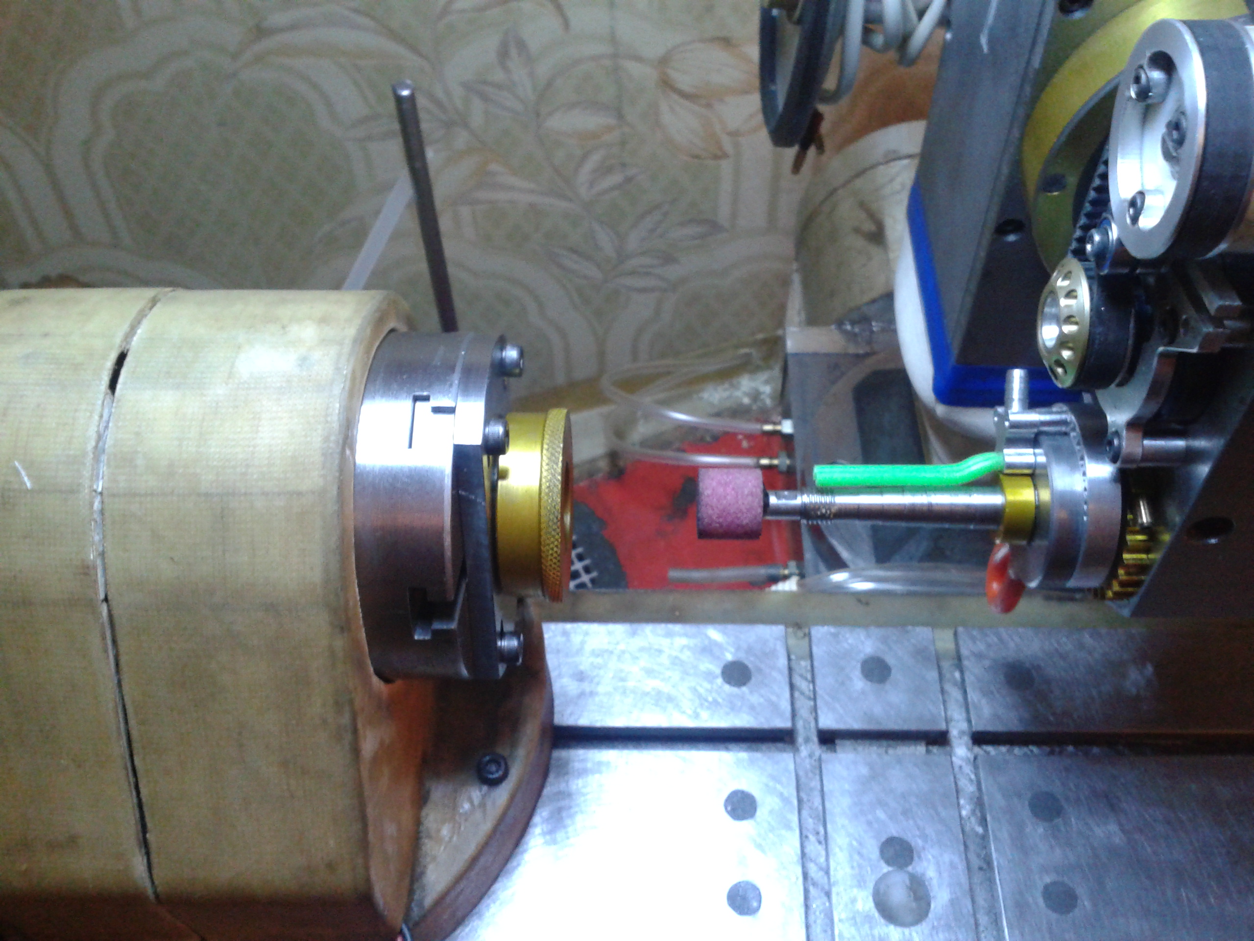 Привет. Начал с внутренней шлифовки. Пробую шлифовать гильзы модельные(они выше по теме на фотках) ,ну и полторы сотки эллипса. Не всегда стабильно ,но примерно так. Пару месяцев курю литературу и что самое противное - у корешей спортсменов 3225П ,но из принципа ...в десяти минутах ходьбы)).Пример есть ,знаю какие камни они используют,знаю ,что жёсткость их оправок ниже. Всё ,что можно "погнуть"- гну )). Кладу груз 3.2 кило и проверяю отклонения.За сож ,я писал - марку не знаю,но кореша спортсмены ею пользовались на своем станке и всё в норме. Стол хоть и не на призме ,но отклонений на длине 30 мм (длина образующей гильзы) не показывает по микронному индикатору,да и эллипс строго вдоль образующей цилиндра вроде ,как исключает стол .При врезном шлифование эллипс полторы сотки. Были случаи ,когда китайский редуктор привода бабки изделия отказывал и деталь естественно не вращалась появлялся след в виде тонкой равномерной лунки вдоль образующей цилиндра.Камень не берёт как положено ,плохо заправлен,режимы шлифования и обороты не стабильные .Головки(круги ) не маркированные - знаю ,что плохо...белые ,зерно в районе 0.1 - 0.2 мм ни структуру ,ни твердость, ни связку не смогу определить.У пацанов эти же камни ,я не мерил результат ...надеюсь что не врут про практический ноль по некруглости. Индикатор на втулку которая стоит и вращается в призме ( ну и деталь к втулке привязана через оправку) ставил и при работе под нагрузкой проверял. Один микронный показывает где то 0.3 микрона ,ну пусть глаза не такие и пусть 0.5,второй двух микронный в районе микрона. В общем сейчас я как обезьяна - то ли к умным податься ,то ли к красивым. Остается пока камни,шпиндель и его привод. С алмазными головками было бы легче (лучше эльбор из -за всеядности),но я не зная связку ,твердость и структуру,че искать ? На дурняк не получилось проскочить