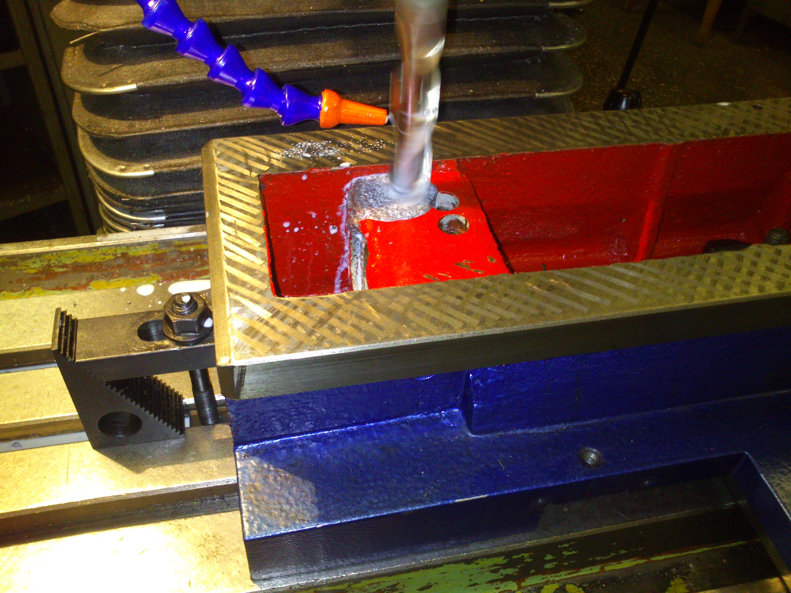 Вырезаю еще один кусок чугунуния мешающего гайке ШВП ( и мне лично ). Очень плохо сверлится, сверло дормер на 8мм садилось каждых 10мм. Нашел сверло на 9.5 из Р18 с ним стало полегче.