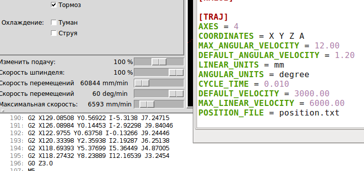 Где все это написать? в одной УП F6000, а аксис все равно 15мм/мин показывает