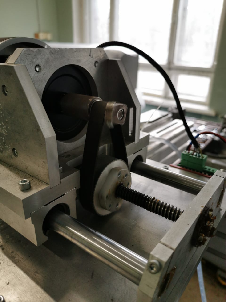 Два ролика на них сверху проволока. Третий ролик сверху вниз тянет проволоку грузиком. Ходит по рельсе профильной. На видео там рельса горизонтально расположена.Dimka писал(а):aftaev, а натяжитель там как устроен? Тупо пружинка?