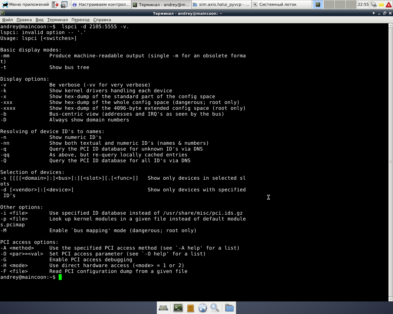 точка то в конце не нужна. Ну или для начала просто: lspci