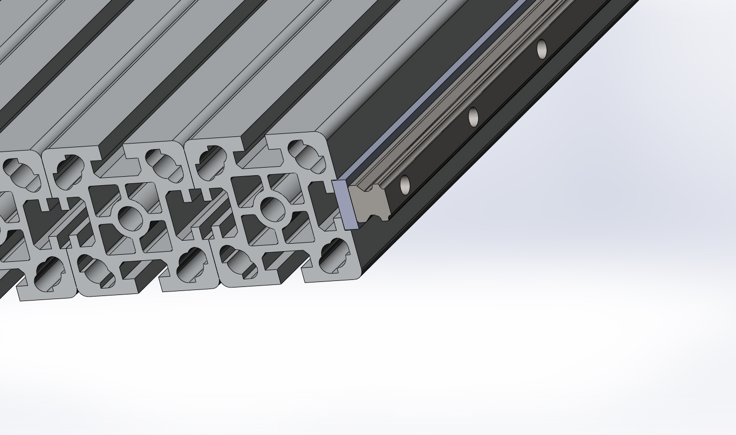 В паз под направляющую нужно будет вставить пластину 6х20 мм и через неё прикрутить 15-ый рельс: