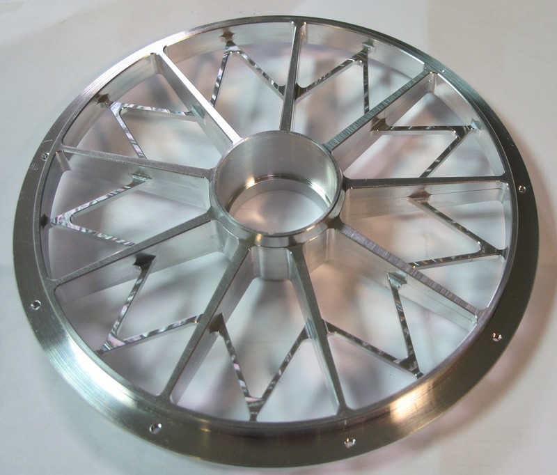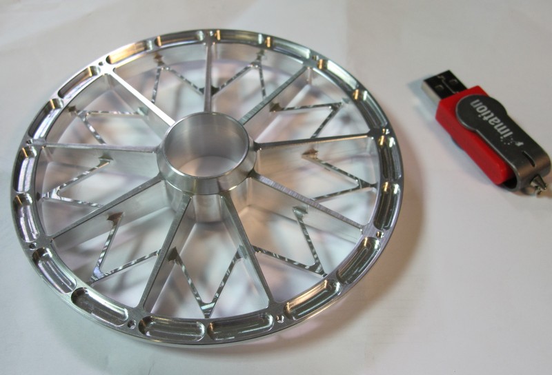 делал из 30 мм плиты шайбу, потом токарка и потом фрезеровка, материала 1.4 кило, деталька 56 гр