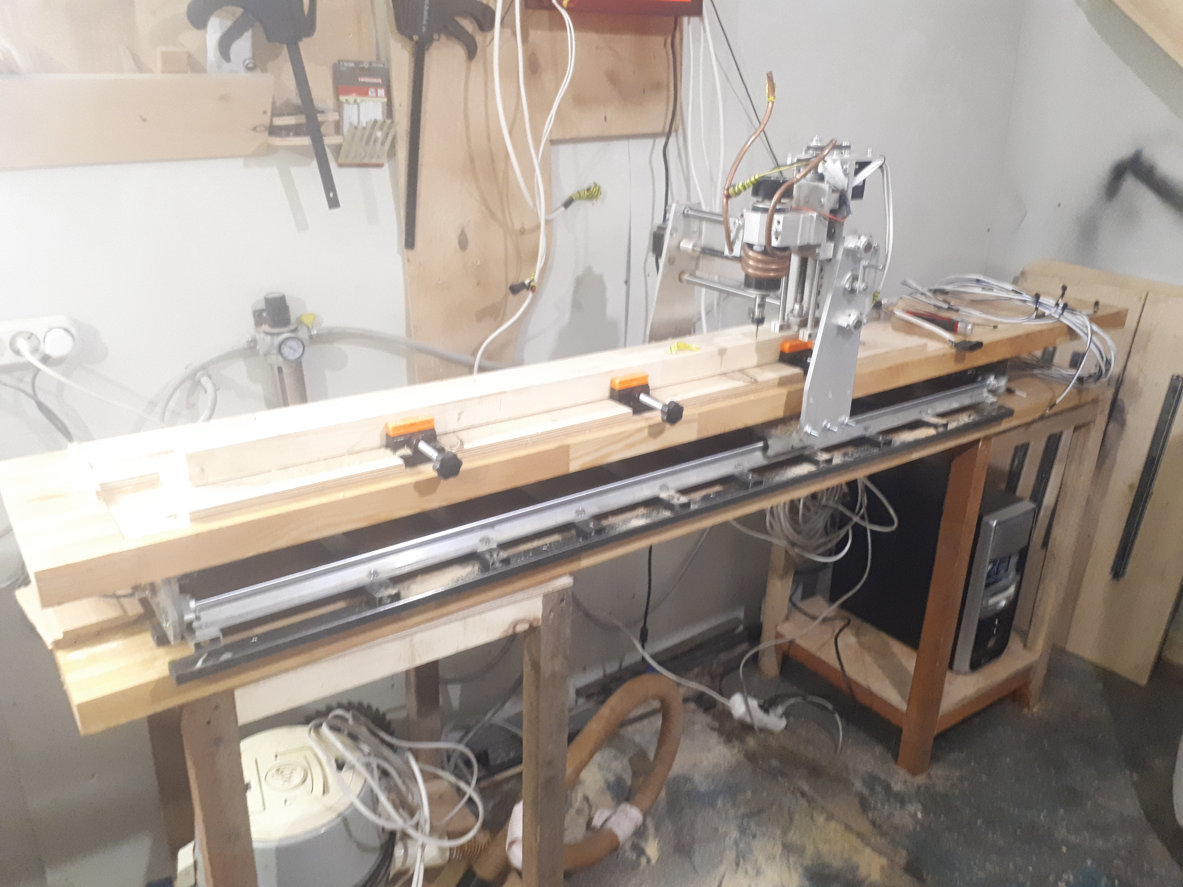 Тут случился интересный случай. Некоторое время назад сделал одному человеку настольный станок ЧПУ с форматом А3. Но он не только освоил работу на нем, но еще оказался и рукастым и головастым. Взял самостоятельно да и переделал "столик" станка на новую длину, а остальное (портал с осями Y и Z) просто перенес на новое место, ничего не разбирая и меняя. Теперь вполне обрабатывает различные деревянные длинномеры. Вот что может сделать в ЧПУ-шном деле смекалка и технический прогресс!