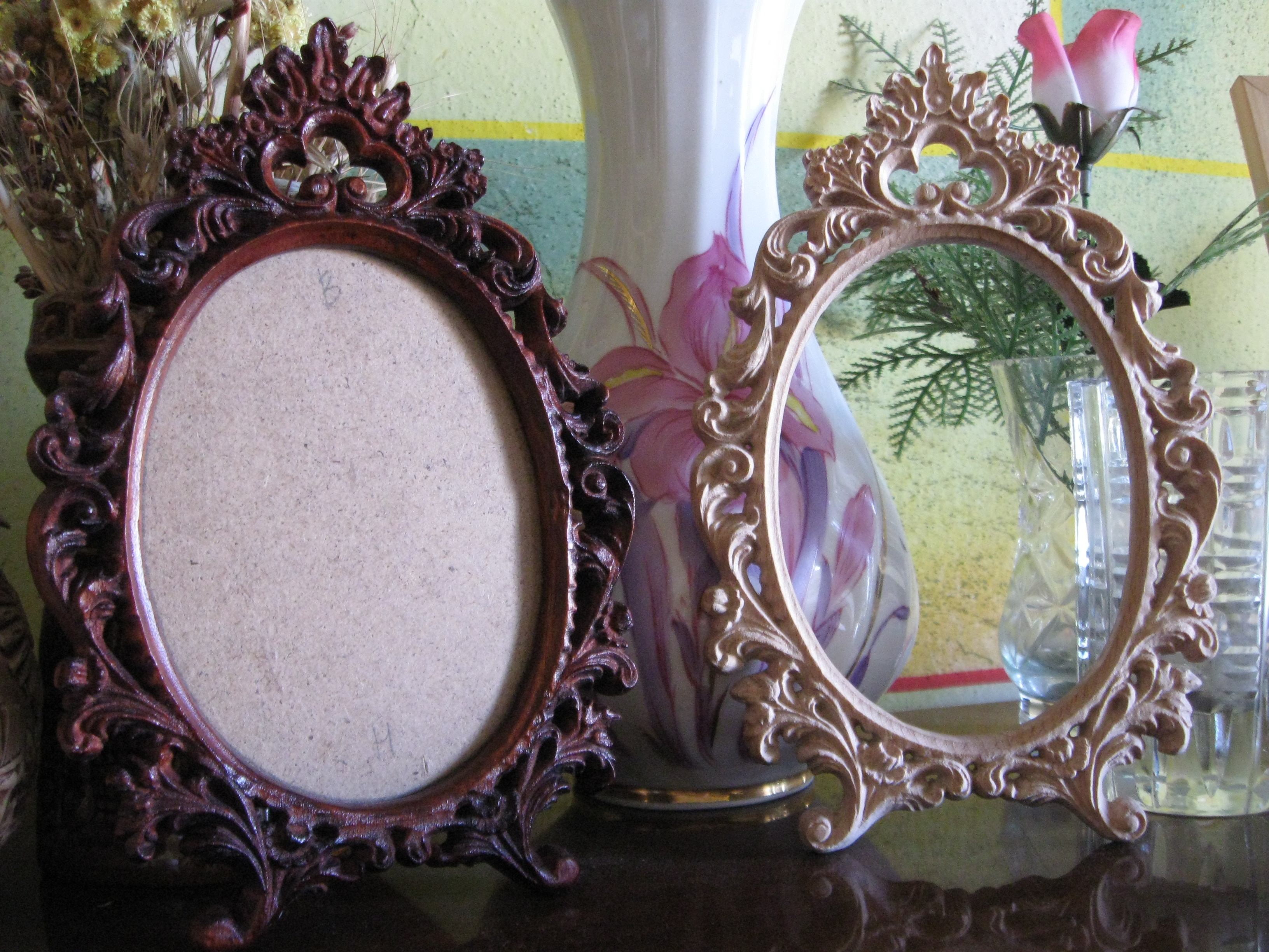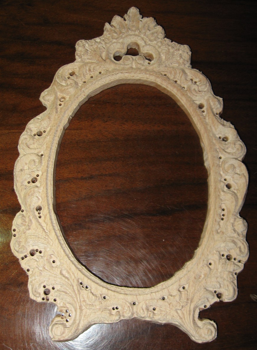Вообще ножки это самый ненадежный элемент этого изделия, у первой рамки одна ножка ломалась 3 раза... хрупкая вещь... следующая рамка будет в 2 раза больше, т.к. шлифовать гравером быстрее чем циклевать, а при очень маленьких поверхностях только циклевка помогала, фрезой не всегда можно подлезть... впрочем у меня могут быть фрезы не для этого предназначенные поэтому и не подходят для микро-шлифовки дерева...