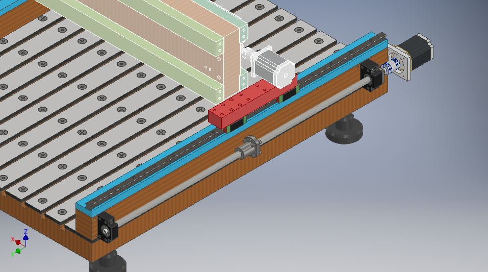 "Изломал" голову - как крепить каретки сразу к стойке портала, уже жалею что не разместил ШВП и рельсы в одной плоскости(вертикально).