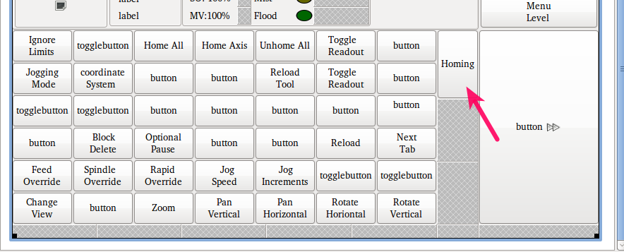 активный второй ряд кнопок - наша кнопка Homing опять же видна