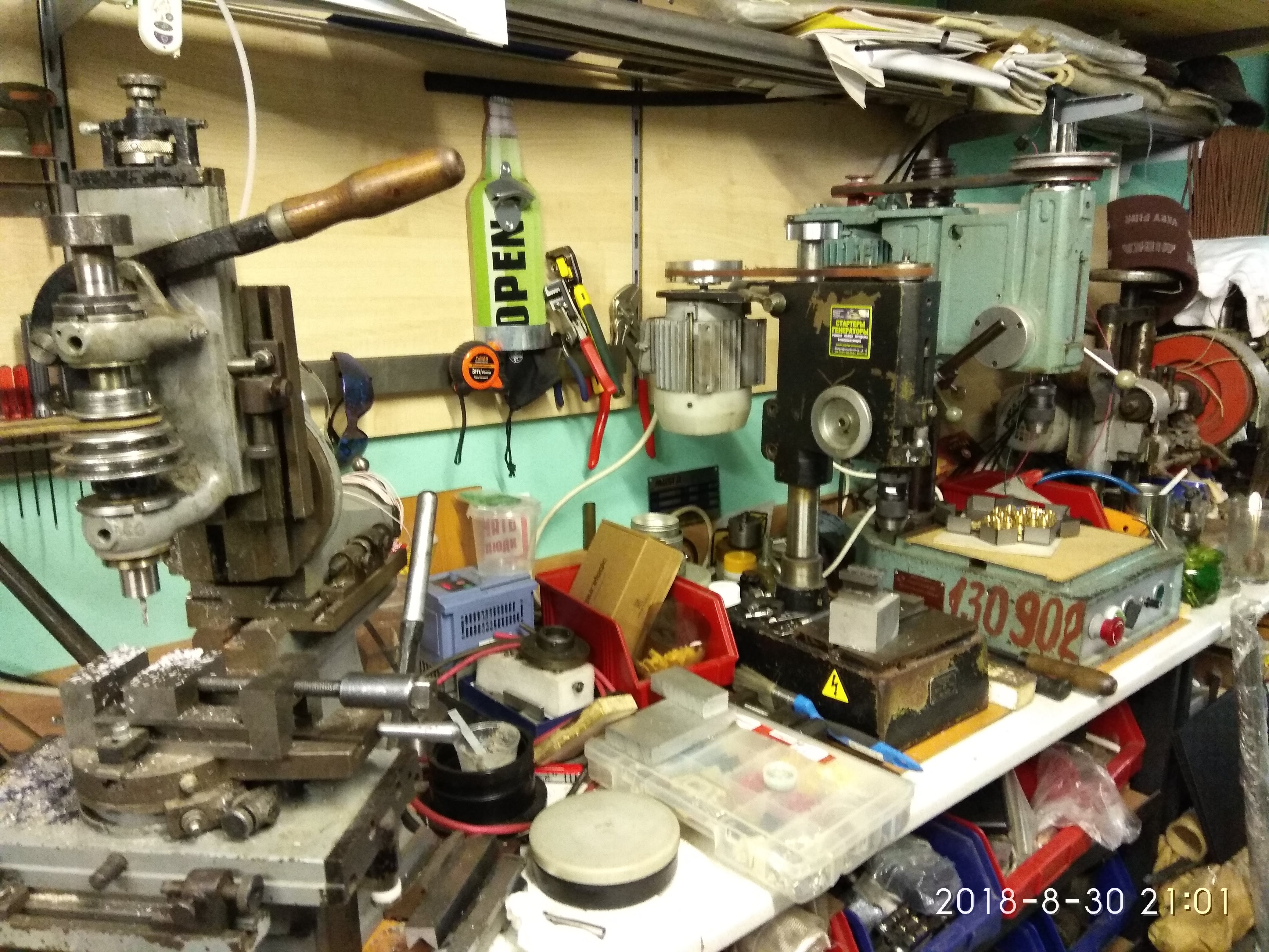 че мы тут видим ??? на участке длиной 2 метра (!!) - два верстака длиной по метру. или настенные панели по 700мм.. - могу если нада с рулеткой даже отфоткать... Итого - на ДВУХ метрах стоят - часовой фрезер Ф2А..... часовая сверлилка НО-800... крупная сверлилка (явно крупнее часовой) и два часовых кривошипных пресса... ЕЩЕ раз - это все стоит на участке длиной ДВА метра. и шириной 0.6.. и ширины там с избытком. Причем стоит это все совсем не плотно, ибо хватает места на чайники, лоточки, какую то оснастку, частотники и прочую требуху.. В итоге на столе длиной 2 метра и шириной 1 метр встанут спиной друг к другу 10 таких станков без каких либо проблем. а учитывая что часовая сверлилка будет в 1.5 раза меньше той "крупной" что у меня стоит, то и еще свободней будет.. А теперь вопрос - КАКОЙ фрезерный чпу станок годный для часового производства встанет на ДВА КВАДРАТНЫХ МЕТРА ????