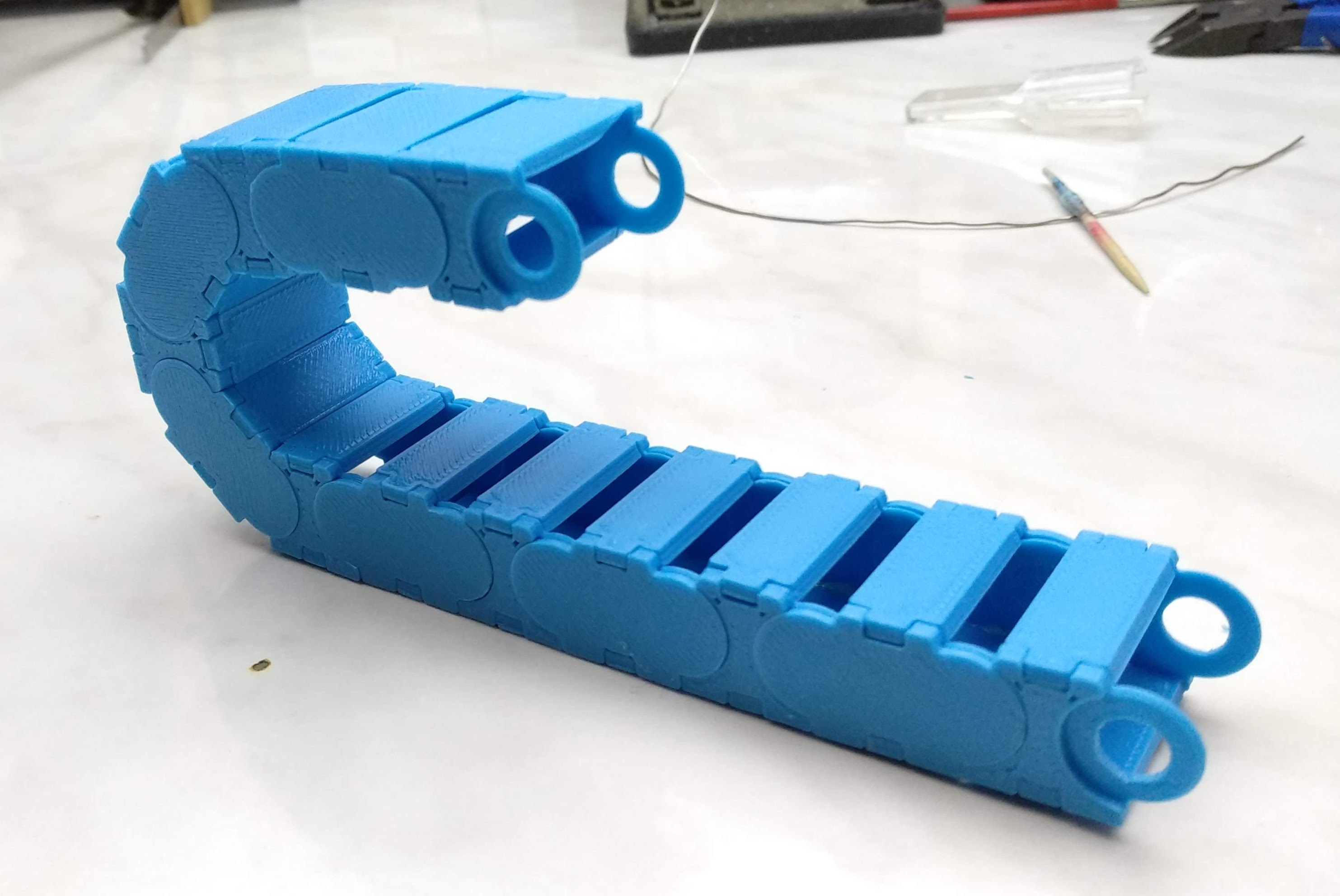 - оси соединения звеньев увеличены по длине на 1 мм и смотрят наружу, чтоб не цепляли кабель,