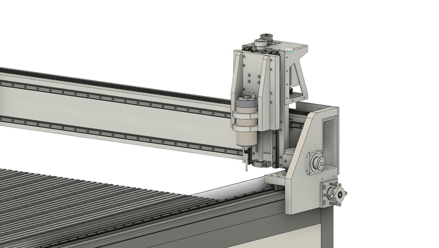 Небольшой апдейт. Поменял крепление шпинделя, добавил ребра на Z, убрал 2 профиля и поставил вместо них один 200*100*6 (более 50кг веса выходит). Плоскость базирования оставил только одну, которую и буду шлифовать. Оставил сверху небольшой зазор для выставления 2 сторон портала в горизонт. Балка портала изнутри будет закреплена на резьбовые соединения к боковине, через слоты вертикальные, для возможности регулировки, а сверху и снизу болты в распор пойдут для удобной фиксации.