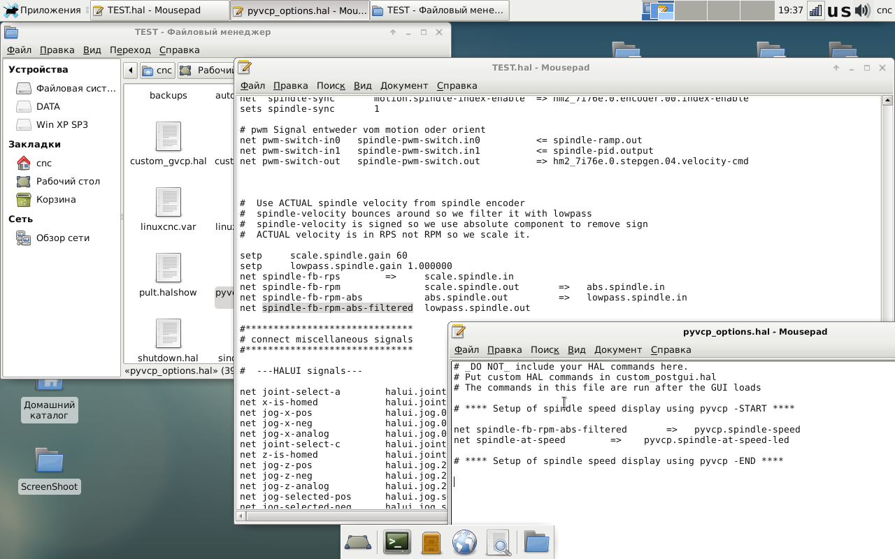 Та часть кода которая отвечает за отображение в PyVCP я заменил переменную (на скорую руку прогнал StepConf, то у тебя тоже должно быть подобное) У мнея она была