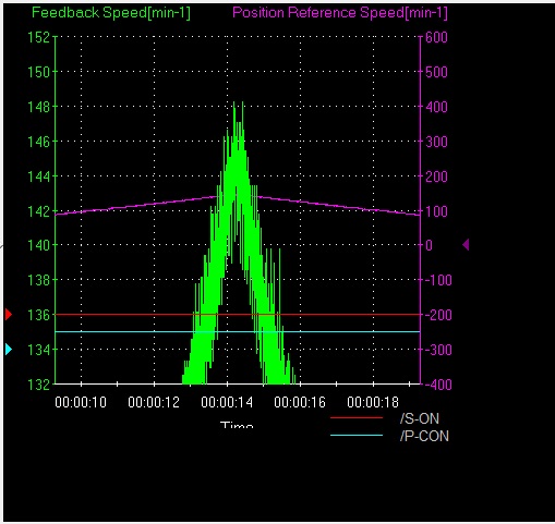 Теперь задача состоит в том, что бы настроить сервосистему именно для низких оборотов. На высоких, динамическая ошибка не сильно и важна, так как это быстрые перемещения оси, так что пропорциональный коэффициет усиления я сбросил пониже. Основная же работа происходит на низких. Причем, вроде бы "рысканья" вала не происходит, так как ошибка позиционирования остается минимальной. Но звук сервы не нравится. С этим и хочу разобраться.