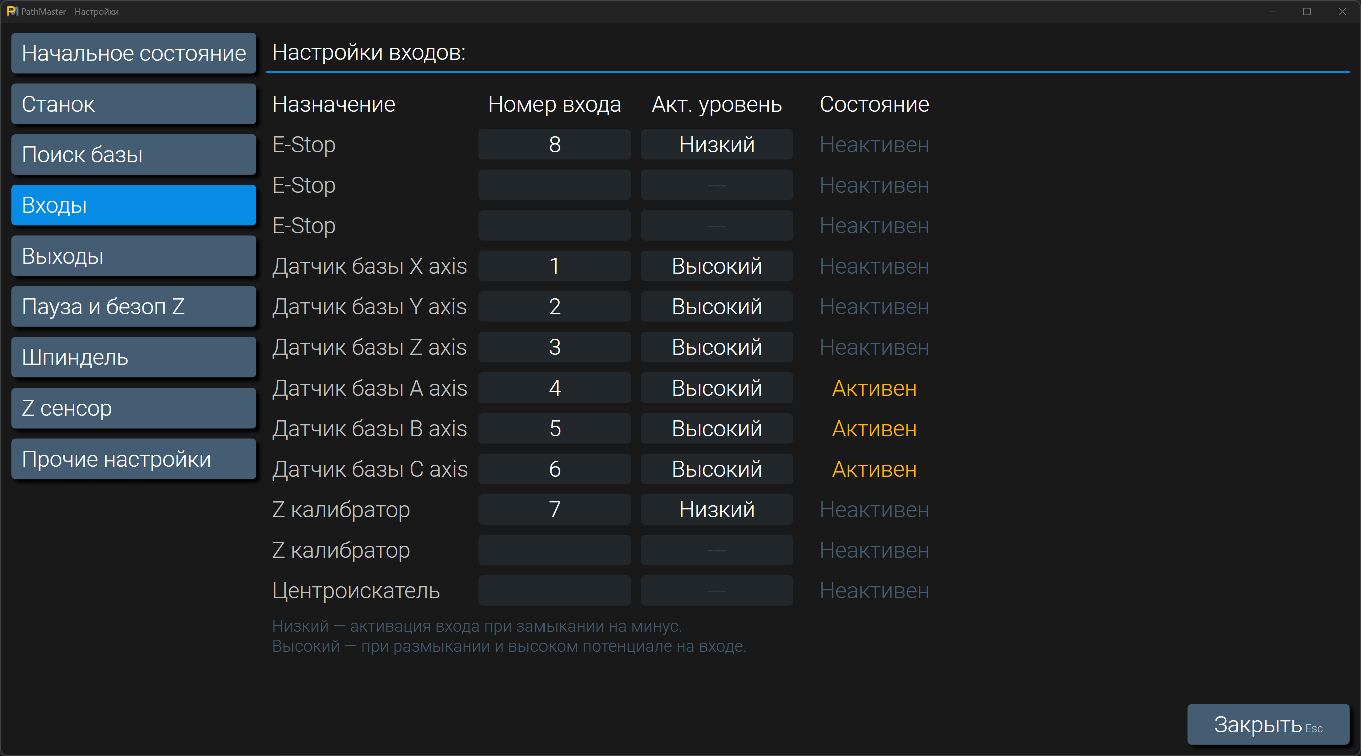 Добавил отображение текущих состояний входов и выходов.