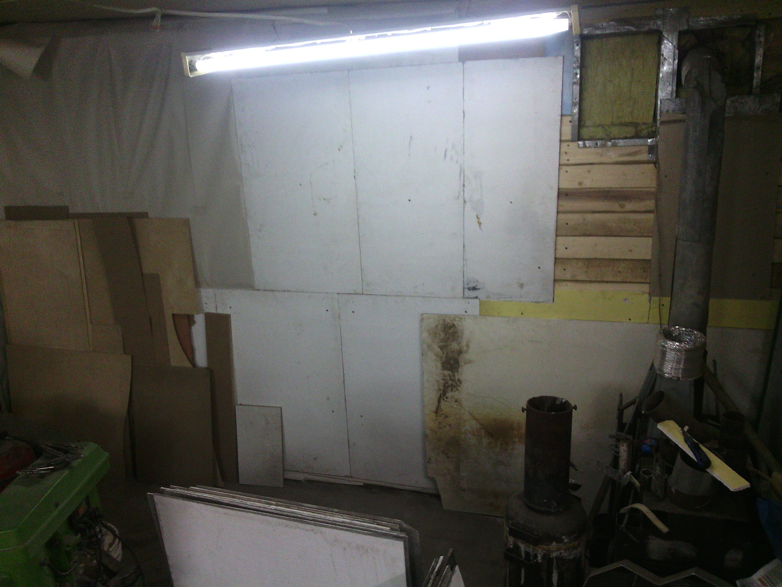 остальную часть стенки простошифером защитил . и при разборе завалов после уменьшения мастерской нашел кусок потолочной плитки . вот эксперемент заснял .