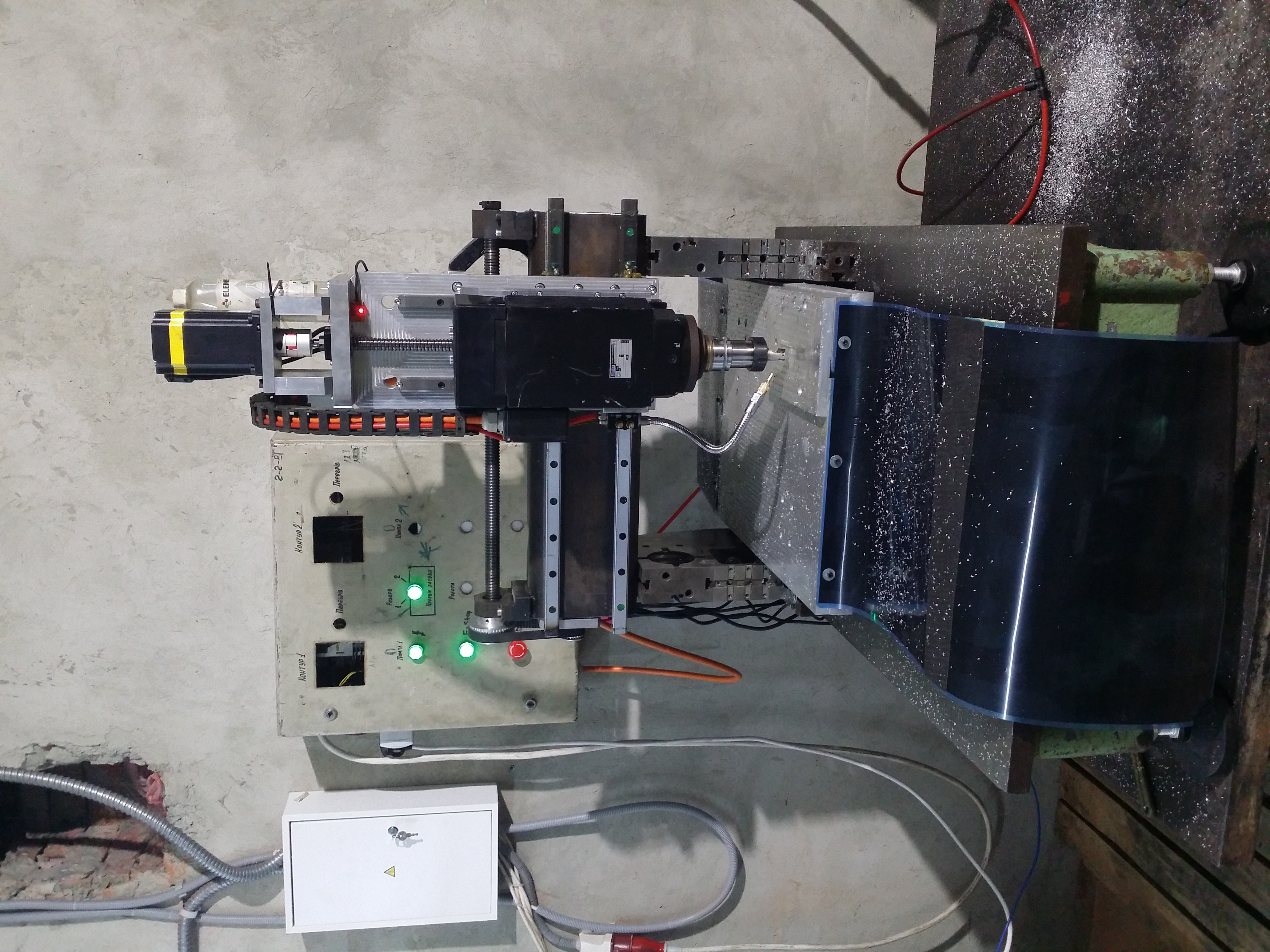 На этой неделе запустили очередной станок. Стол делал сам для себя (делали временное крепление, а потом просто перевернули и выровняли). Собрали почти с хлама. Только кое-какие комплектующие новые.
