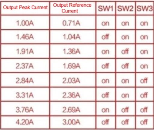 На DM542 есть только пиковый ток. Вот как он сочетается с рабочим током, который указан для моих движков? Я смотрел на таблицу, которую приложил.