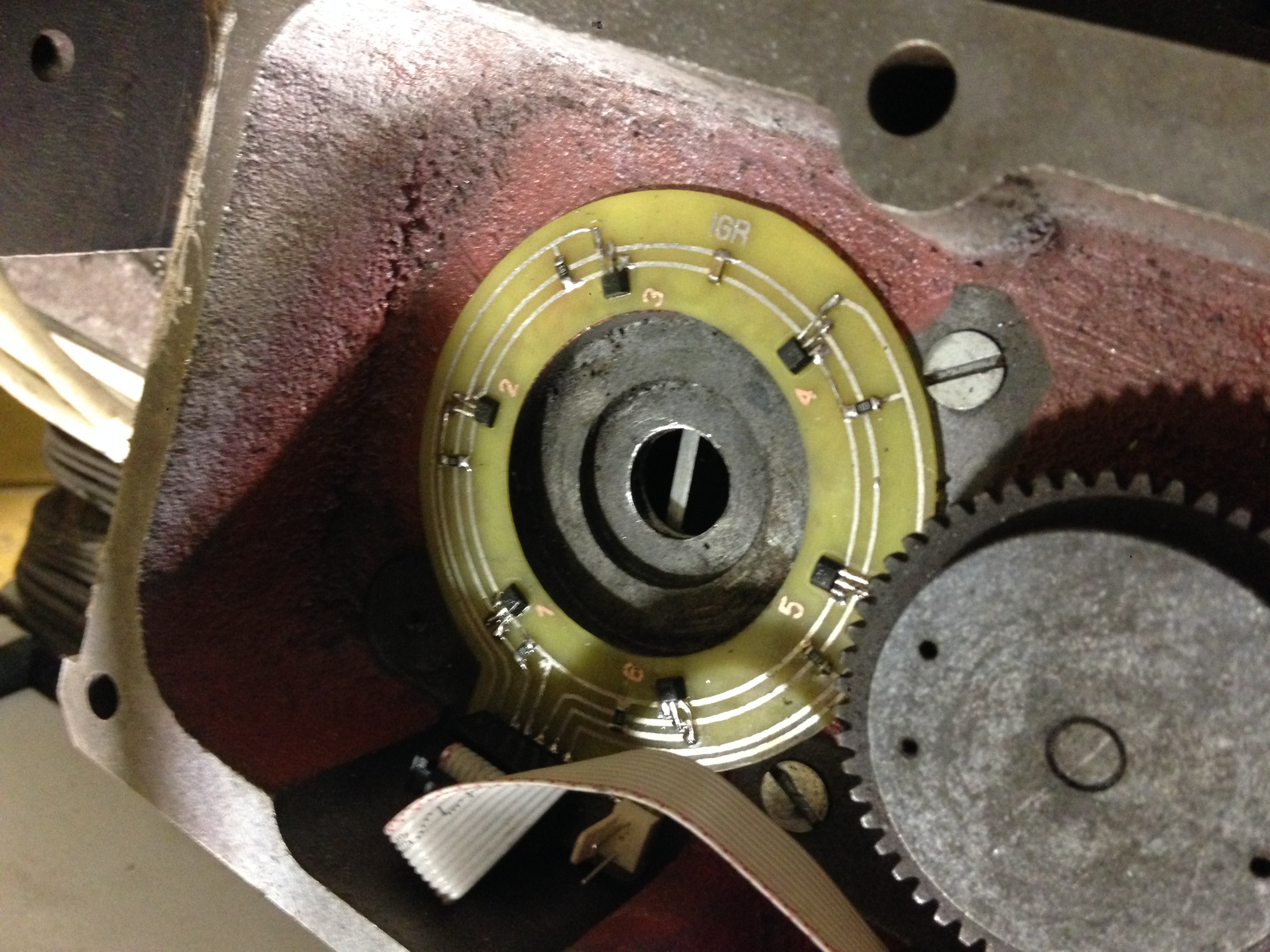 Поставили датчики типа герконов и магнитик на реворвельку, теперь мозг знает на каком резце стоит.