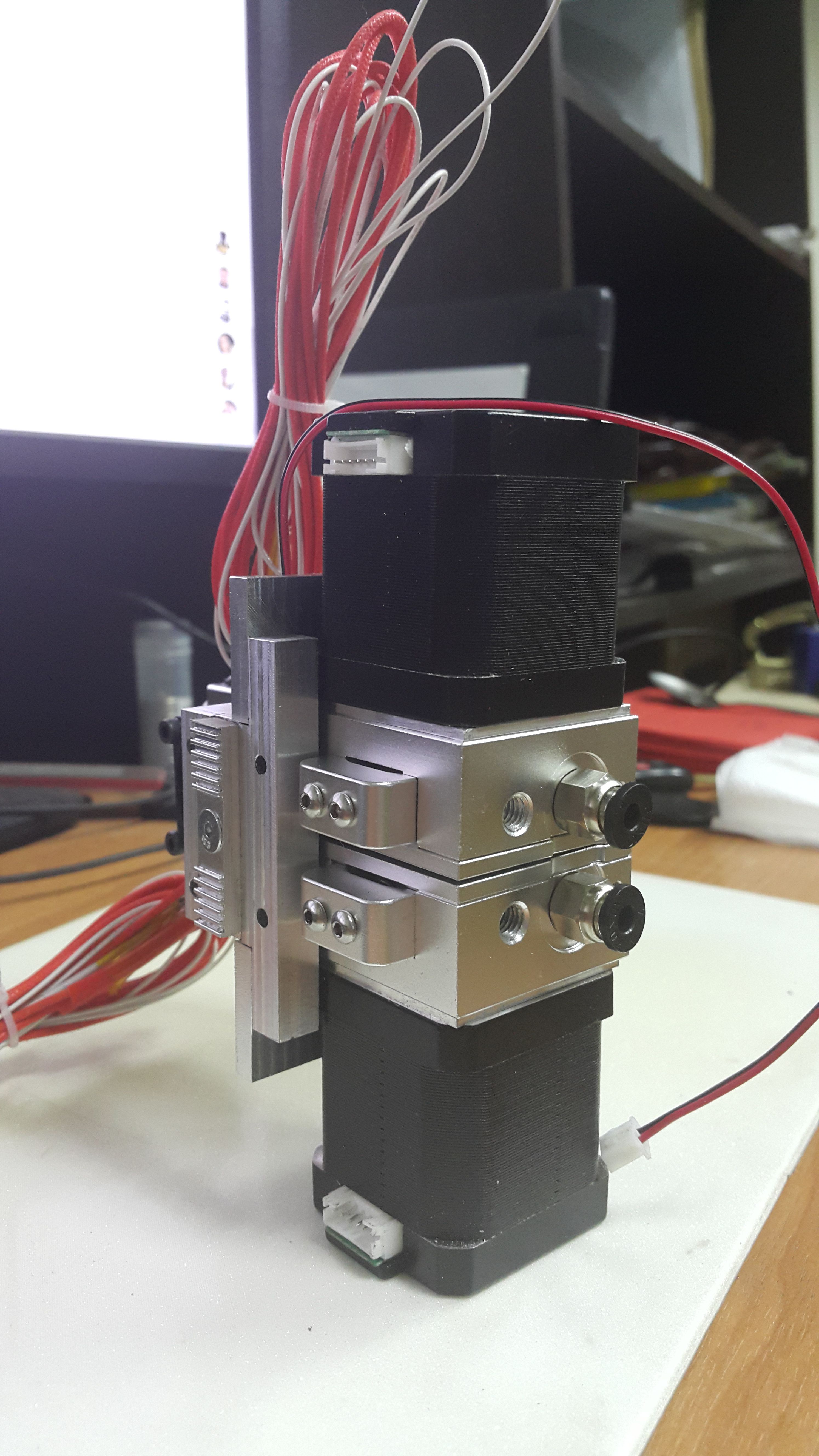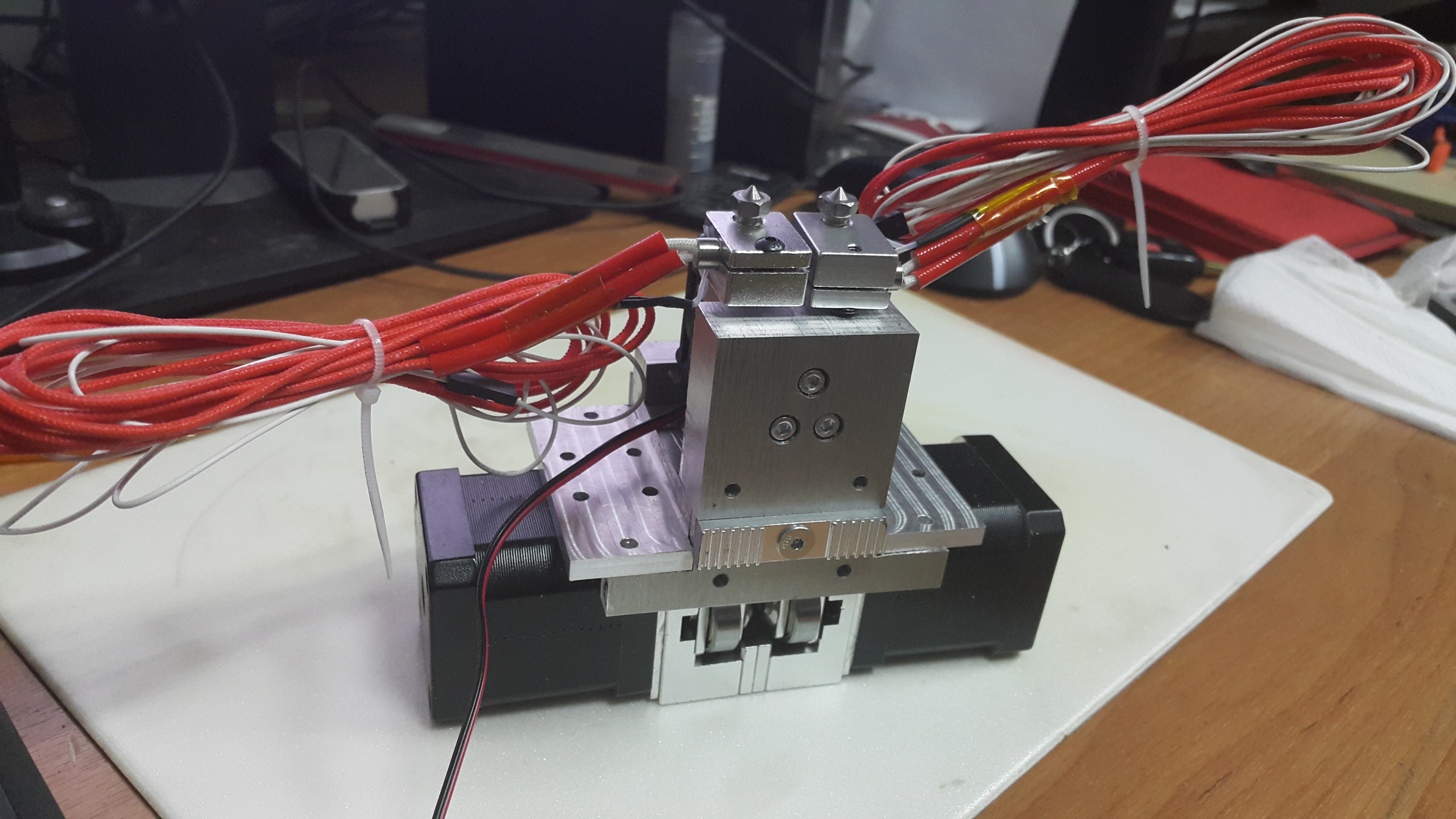 Закончил собирать каретку 3д принтера. Вес "двухголового монстрика" в полной экипировке - 1,25кг. Если оставить одну голову - 800гр.