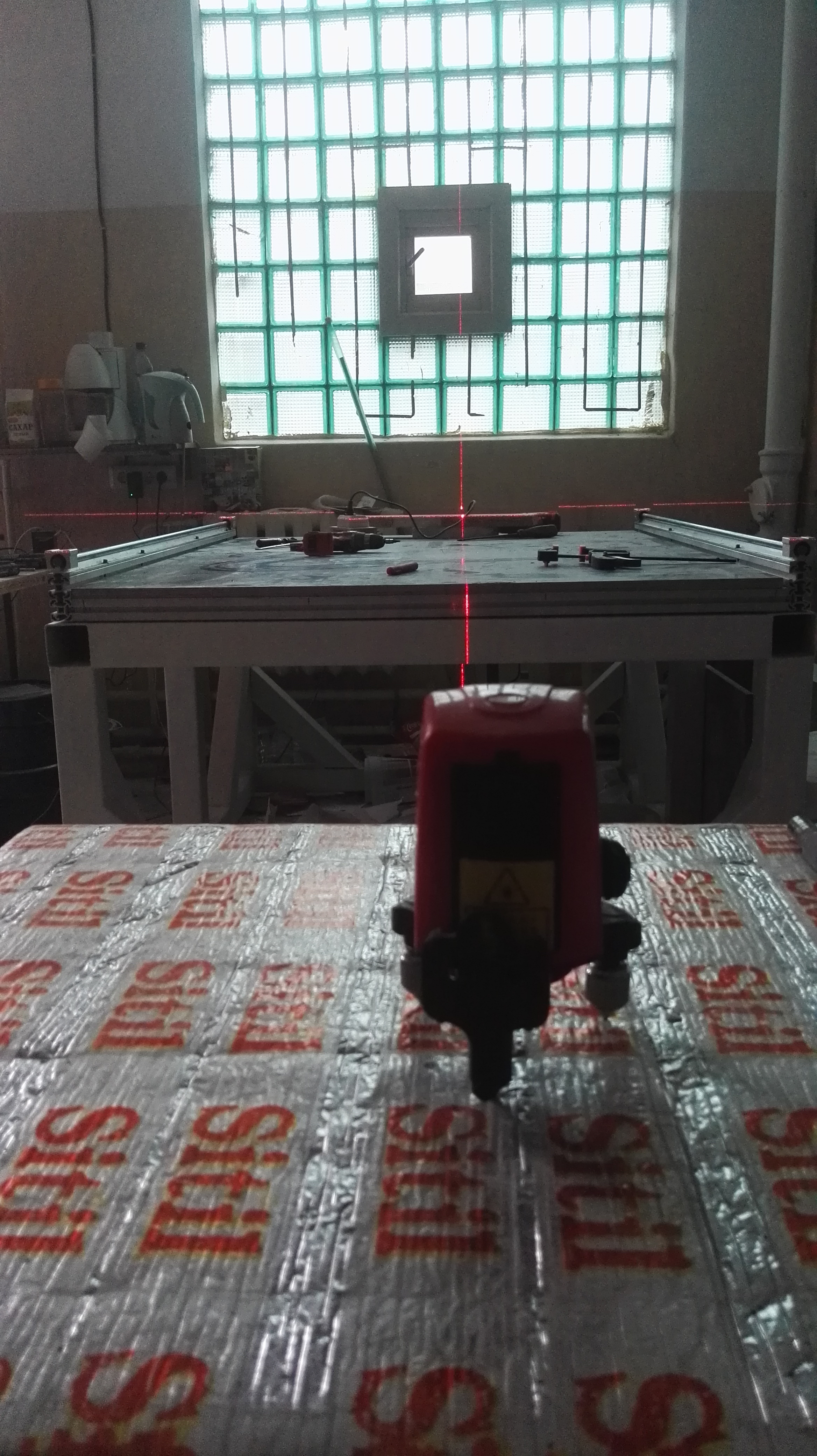 Итак, работы снова возобновились. При сборке жертвенного стола удивило, что перекос самой рамы составил 1-2мм. И тут забираю свои слова про конструкционный профиль(КП), т.к. им все удалось очень шикарно вывести в уровень. В раме каждые 30см резьба и вывел шайбами.
