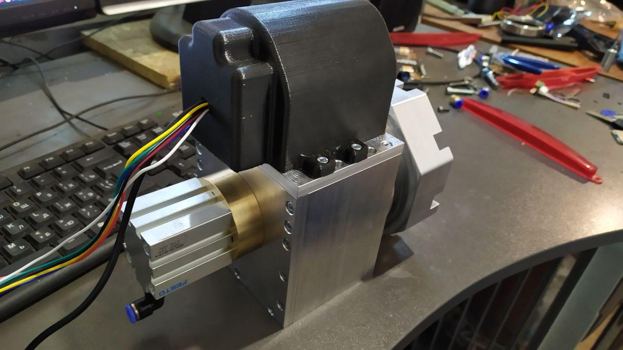Алгоритм по сути такой - включаем пневмораспределитель через реле, ожидаем сигнала о пропаже сигнала с концевика (т.е. пневматика сработала), поворачиваем голову на нужную позицию, выключаем пневматику, проверяем состояние концевика (что он сработал) - профит.