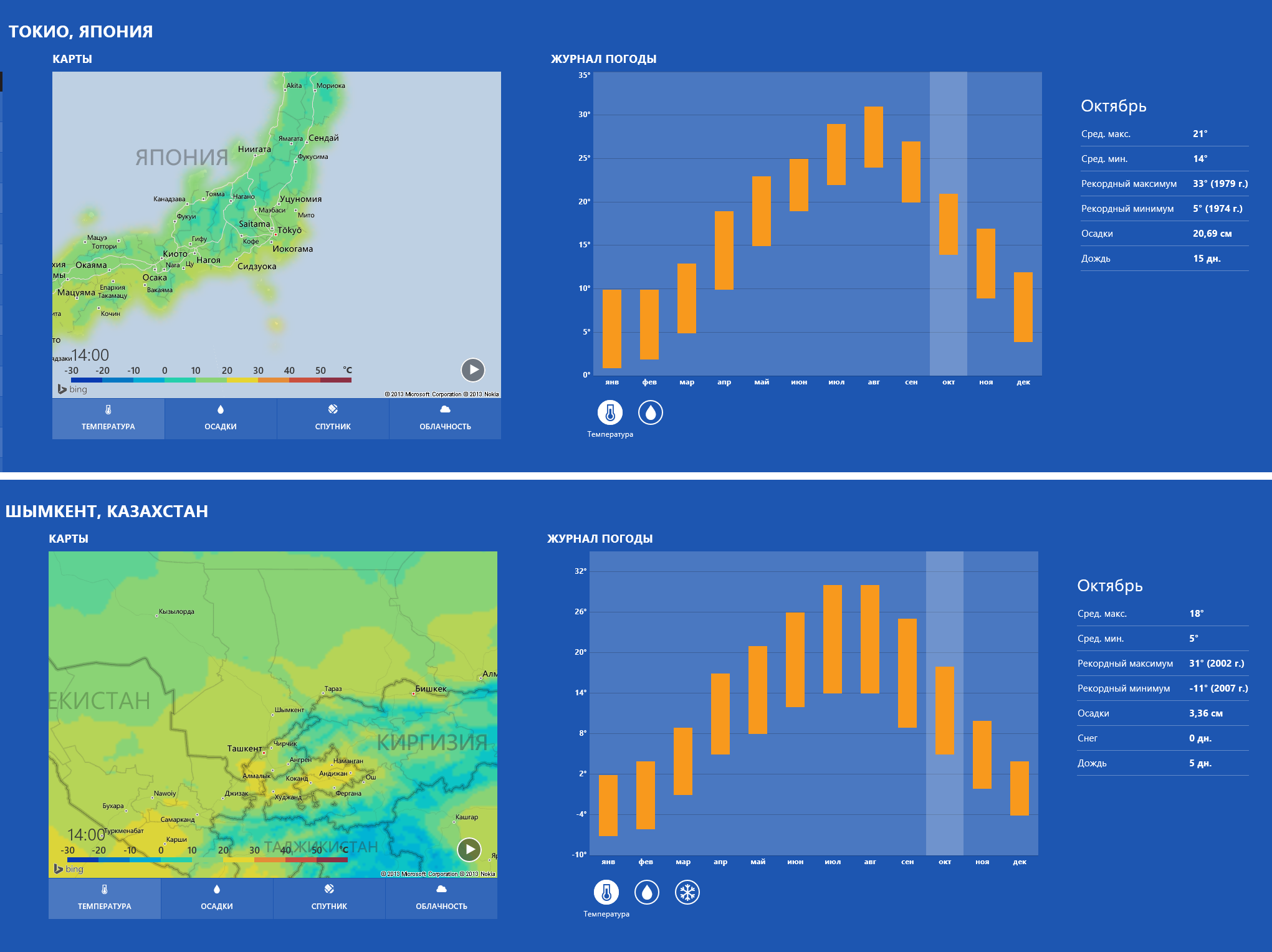 мы на юге у нас тепло. Зимой снег выпадает раз 5ть и тает. Сейчас температура где то + 19 http://www.gismeteo.kz/city/daily/5324/