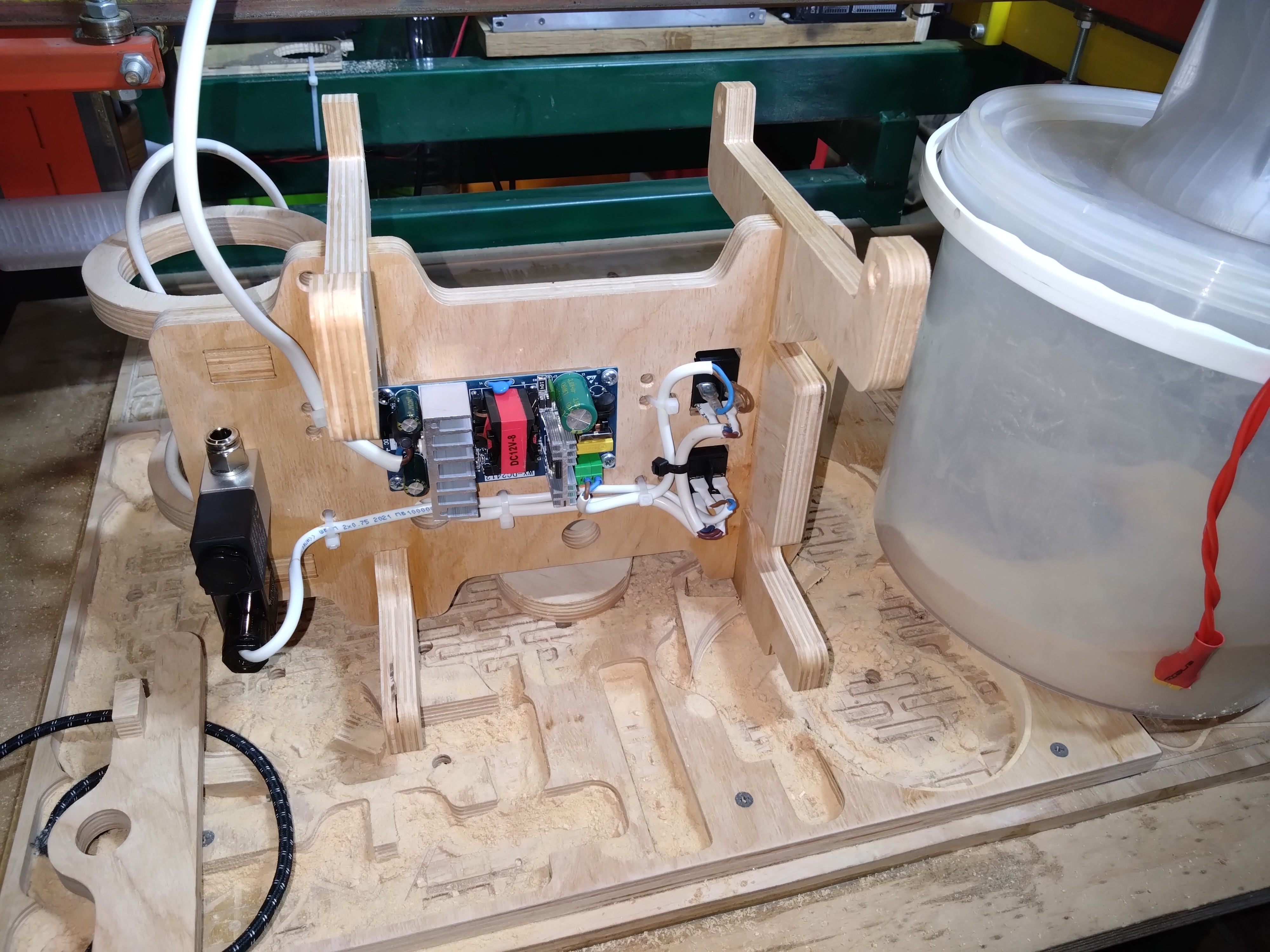 подставка под циклон с блоком питания и выключателями и креплением бутылки сож и пневмоклапаном, вид сзади