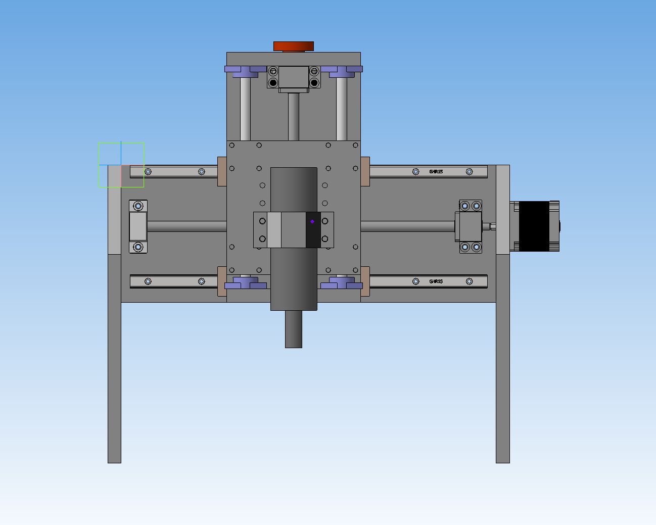 похоже не буду я изобретать велосипед. расмещу так. высоту портала постарался минимизировать, рельсы оси У максимально разнес. боковины будут прямыми и гипотетический центр будет ПРЕДПОЛАГАЮ посередине кареток оси Х...