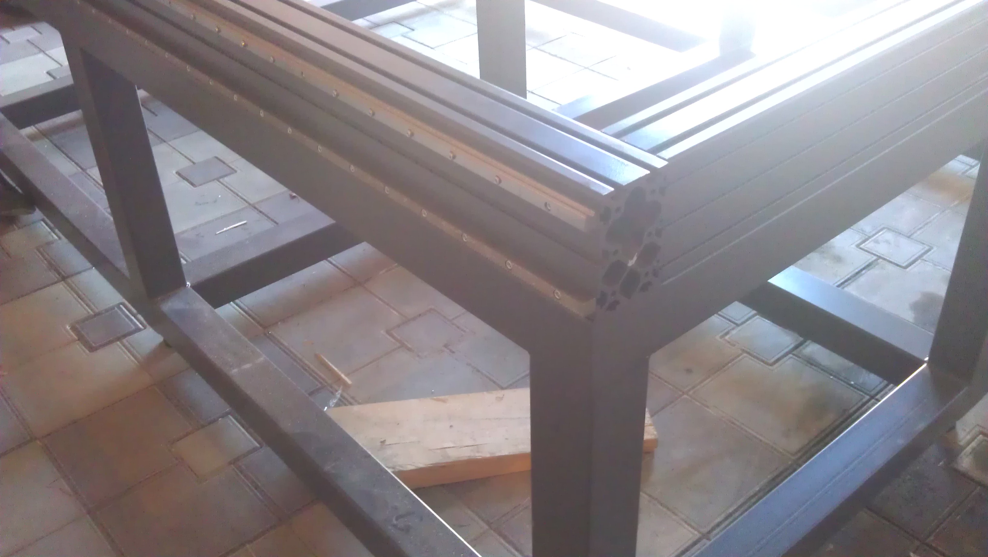 Не окрашенный профиль - это алюминиевый брусок 30x40 мм, примерка и разметка отверстий. На все про все ушло пол дня.