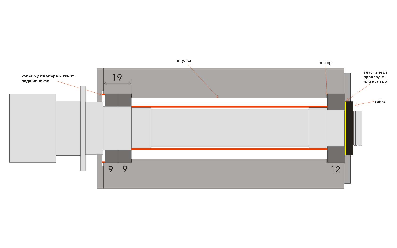 точка в том смысле, что зазор заднего подшипника с обеих сторон? я так и планировал втулку чуть длиннее сделать, чтобы подшипник не упирался внешней обоймой.